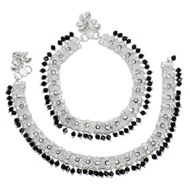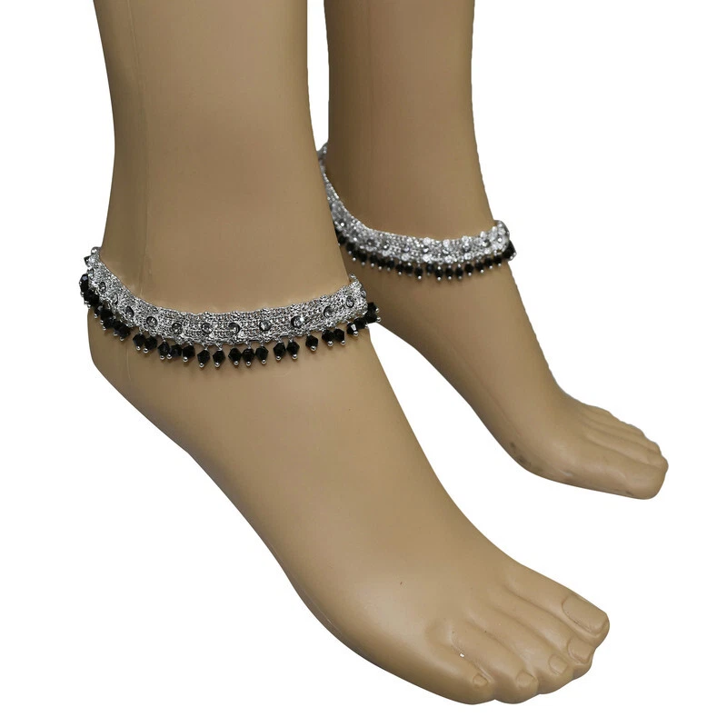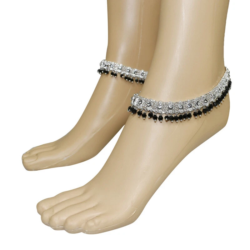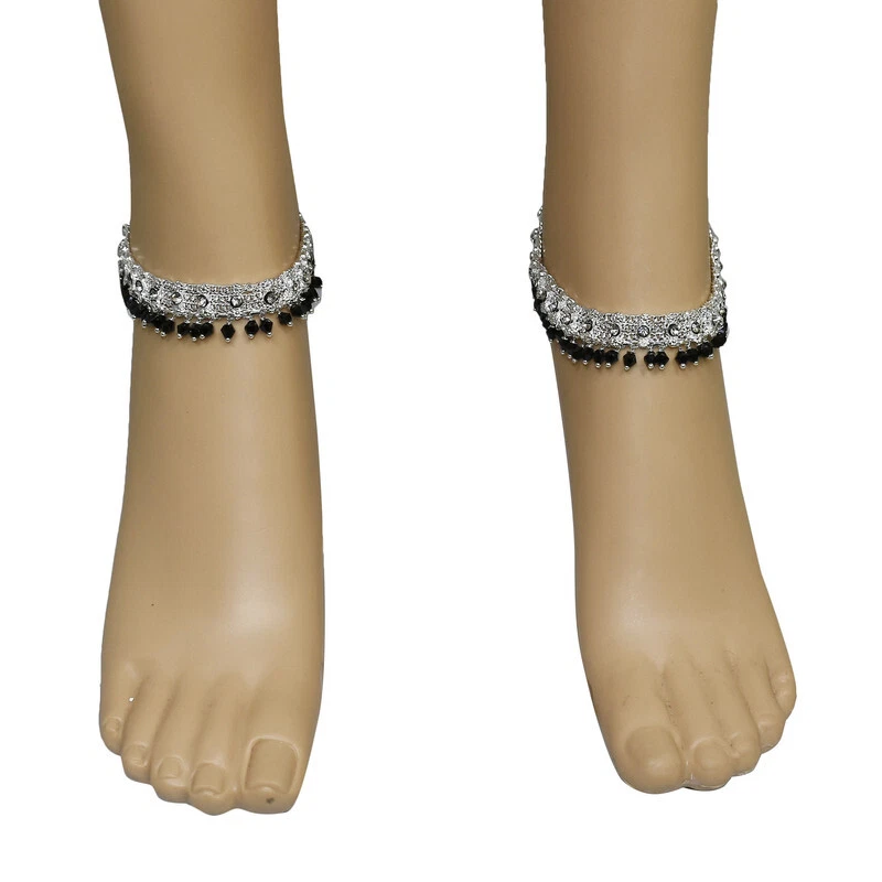 Item Description Women's Anklets Payal Indian Ankle Bracelets Chain Pair Foot Jewellery Sale For:- 1 Pair Size:- Length:-26cm x Width:-1.5cm (Approx) Material:- Metal Color:- Silver & Black Closure:- Hook Type:- Anklets Main Stone:- Artificial Stones & Beads About This Item New Traditional Style Anklet For Women And Girls. Ethnic Significance:- Brides Wear It To Draw Attention To And Decorate Their Feet Bells Or Chimes Make A Soft Sound When The Bride Walks Traditionally Payals Are Worn In Both Feet. Style Tip:- Perfect For Spring And Summer Wear.Compliments Most Outfits.Casual Chic Everyday Wear. Perfect Traditional Anklet Contemporary Look,Ideal For Any Ethnic Outfits Like Saree,Lehenga,Gowns,Bridal Wear,Party, Festival,Any Special Occasion, Dance Or As Fashion Novelty Costume Accessories. Ideal For:- Christmas,Thanks Giving,New Year,Valentine,Birthday,Anniversary Or Any Occasion,Gift For Someone You Love Jewellery Care:- Can Be Used In Water But Dry Completely Before Storing. Note:-Buyers Will Be Responsible For Pay Their Country'S Custom Duties Charge, Import Charges And Other Charges (If Applicable) .