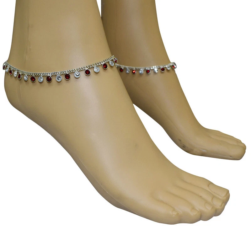 Item Description Women's Anklets Payal Indian Ankle Bracelets Chain Pair Foot Jewellery Sale For:- 1 Pair Size:- Length:-25cm x Width:-0.7cm (Approx) Material:- Metal Color:- Silver & Maroon Closure:- Hook Type:- Anklets Main Stone:- Artificial Stones & Beads About This Item New Traditional Style Anklet For Women And Girls. Ethnic Significance:- Brides Wear It To Draw Attention To And Decorate Their Feet Bells Or Chimes Make A Soft Sound When The Bride Walks Traditionally Payals Are Worn In Both Feet. Style Tip:- Perfect For Spring And Summer Wear.Compliments Most Outfits.Casual Chic Everyday Wear. Perfect Traditional Anklet Contemporary Look,Ideal For Any Ethnic Outfits Like Saree,Lehenga,Gowns,Bridal Wear,Party, Festival,Any Special Occasion, Dance Or As Fashion Novelty Costume Accessories. Ideal For:- Christmas,Thanks Giving,New Year,Valentine,Birthday,Anniversary Or Any Occasion,Gift For Someone You Love Jewellery Care:- Can Be Used In Water But Dry Completely Before Storing. Note:-Buyers Will Be Responsible For Pay Their Country'S Custom Duties Charge, Import Charges And Other Charges (If Applicable).