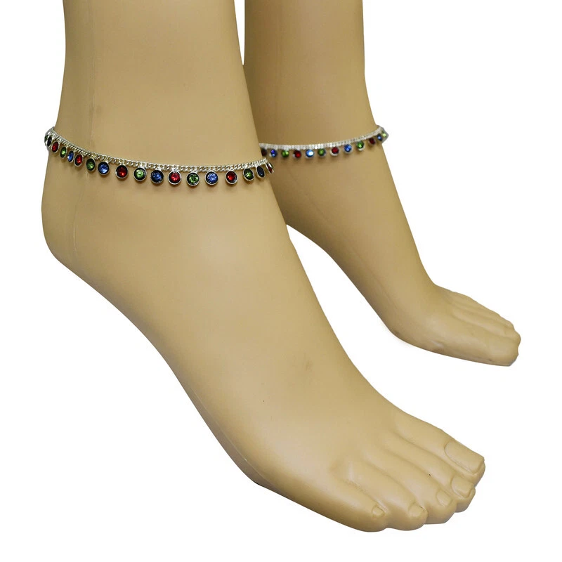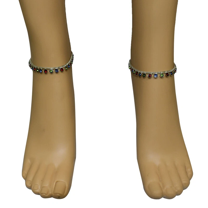 Item Description Women's Anklets Payal Indian Ankle Bracelets Chain Pair Foot Jewellery Sale For:- 1 Pair Size:- Length:-24cm x Width:-0.7cm (Approx) Material:- Metal Color:- Multicolor Closure:- Hook Type:- Anklets Main Stone:- Artificial Stones & Beads About This Item New Traditional Style Anklet For Women And Girls. Ethnic Significance:- Brides Wear It To Draw Attention To And Decorate Their Feet Bells Or Chimes Make A Soft Sound When The Bride Walks Traditionally Payals Are Worn In Both Feet. Style Tip:- Perfect For Spring And Summer Wear.Compliments Most Outfits.Casual Chic Everyday Wear. Perfect Traditional Anklet Contemporary Look,Ideal For Any Ethnic Outfits Like Saree,Lehenga,Gowns,Bridal Wear,Party, Festival,Any Special Occasion, Dance Or As Fashion Novelty Costume Accessories. Ideal For:- Christmas,Thanks Giving,New Year,Valentine,Birthday,Anniversary Or Any Occasion,Gift For Someone You Love Jewellery Care:- Can Be Used In Water But Dry Completely Before Storing. Note:-Buyers Will Be Responsible For Pay Their Country'S Custom Duties Charge, Import Charges And Other Charges (If Applicable) .