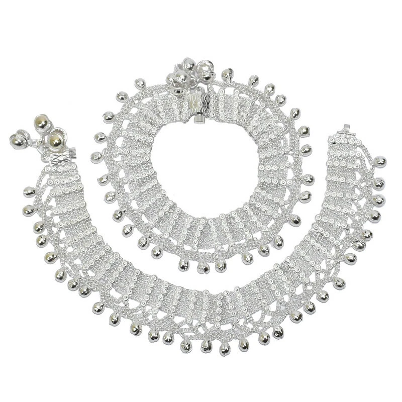 Item Description Women's Anklets Payal Indian Ankle Bracelets Chain Pair Foot Jewellery Sale For:- 1 Pair Size:- Length:-25cm x Width:-2.5cm (Approx) Material:- Metal Color:- Silver Closure:- Screw Type:- Anklets Main Stone:- No Stone About This Item New Traditional Style Anklet For Women And Girls. Ethnic Significance:- Brides Wear It To Draw Attention To And Decorate Their Feet Bells Or Chimes Make A Soft Sound When The Bride Walks Traditionally Payals Are Worn In Both Feet. Style Tip:- Perfect For Spring And Summer Wear.Compliments Most Outfits.Casual Chic Everyday Wear. Perfect Traditional Anklet Contemporary Look,Ideal For Any Ethnic Outfits Like Saree,Lehenga,Gowns,Bridal Wear,Party, Festival,Any Special Occasion, Dance Or As Fashion Novelty Costume Accessories. Ideal For:- Christmas,Thanks Giving,New Year,Valentine,Birthday,Anniversary Or Any Occasion,Gift For Someone You Love Jewellery Care:- Can Be Used In Water But Dry Completely Before Storing. Note:-Buyers Will Be Responsible For Pay Their Country'S Custom Duties Charge, Import Charges And Other Charges (If Applicable) .