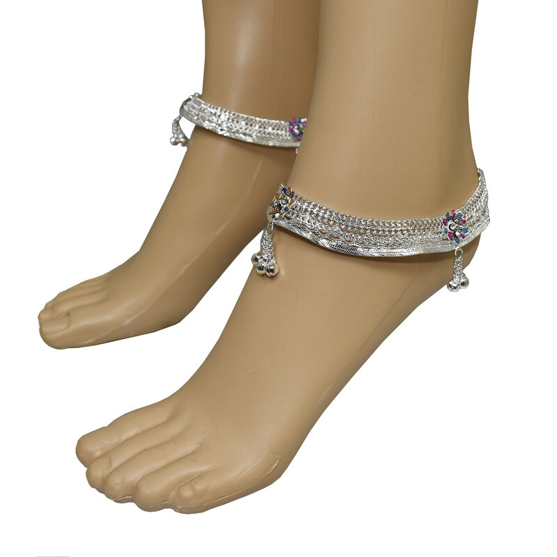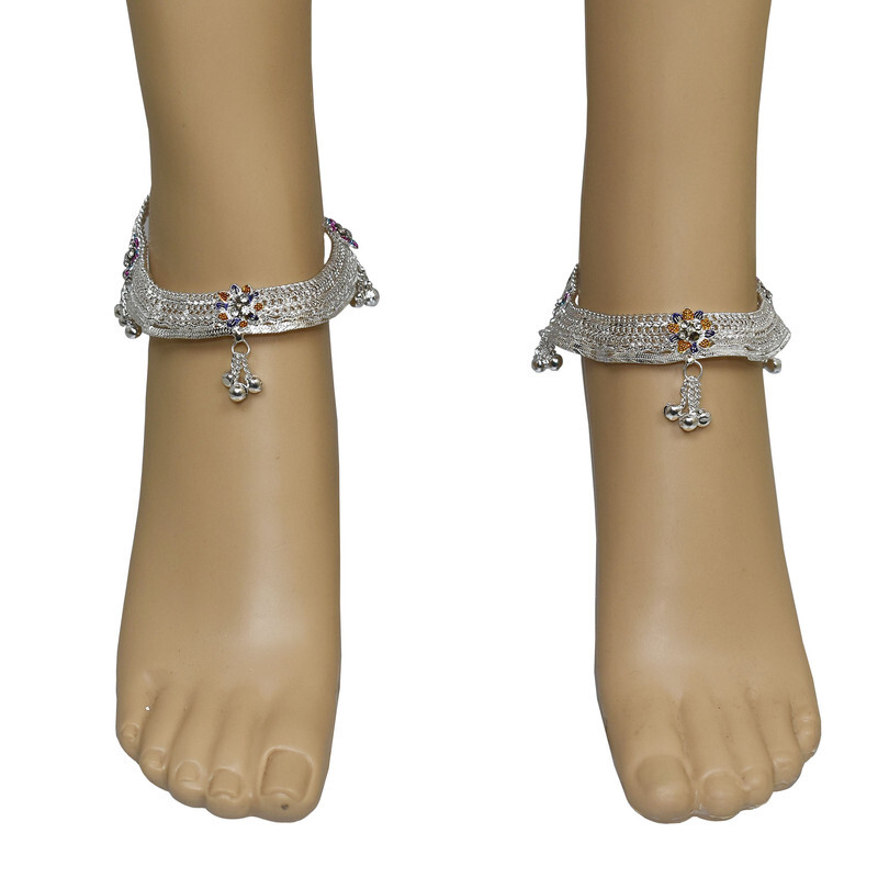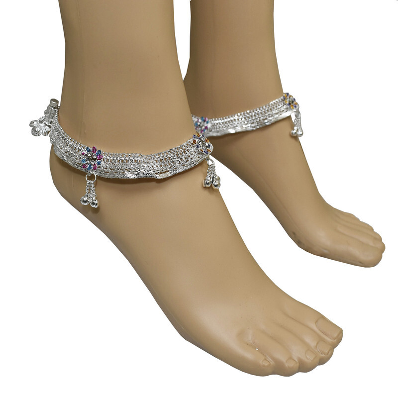 Women Ankle Anklets Payal Indian Bracelets Chain Pair Foot Jewellery Sale For:- 1 Pair Size:- Length:--26cm x Width:-3cm (Approx) Material:- Metal Color:- Silver&Multicolor Closure:- Screw Type:- Anklets Main Stone:- Artificial Stones & Bell About This Item New Traditional Style Anklet For Women And Girls. High Quality Silver Plating,Long Lasting,Handcrafted,Embellished With Metal Bell Charm Chain Tassels. Ethnic Significance:- Brides Wear It To Draw Attention To And Decorate Their Feet Bells Or Chimes Make A Soft Sound When The Bride Walks Traditionally Payals Are Worn In Both Feet. Style Tip:- Perfect For Spring And Summer Wear.Compliments Most Outfits.Casual Chic Everyday Wear. Perfect traditional look. Any Ethnic Outfits Like.Saree,Lehenga,Gowns,Bridal Wear,Party,Festival,Any Special Occasion,Dance Or As Fashion Novelty Costume Accessories. Ideal For:- Christmas,Thanks Giving,New Year,Valentine,Birthday,Anniversary Or Any Occasion,Gift For Someone You Love Jewellery Care:- Can Be Used In Water But Dry Completely Before Storing. Note:-Buyers Will Be Responsible For Pay Their Country's Custom Duties Charge, Import Charges And Other Charges (If Applicable). Note - USA Buyers Do Not Pay any Extra Charge At The Time of Delivery. Note - USA Buyers Do Not Pay any Extra Charge At The Time of Delivery.