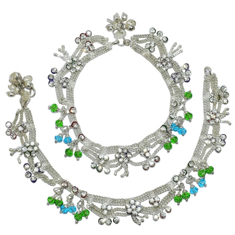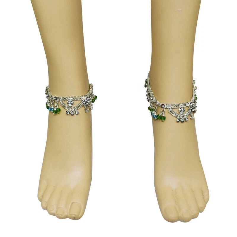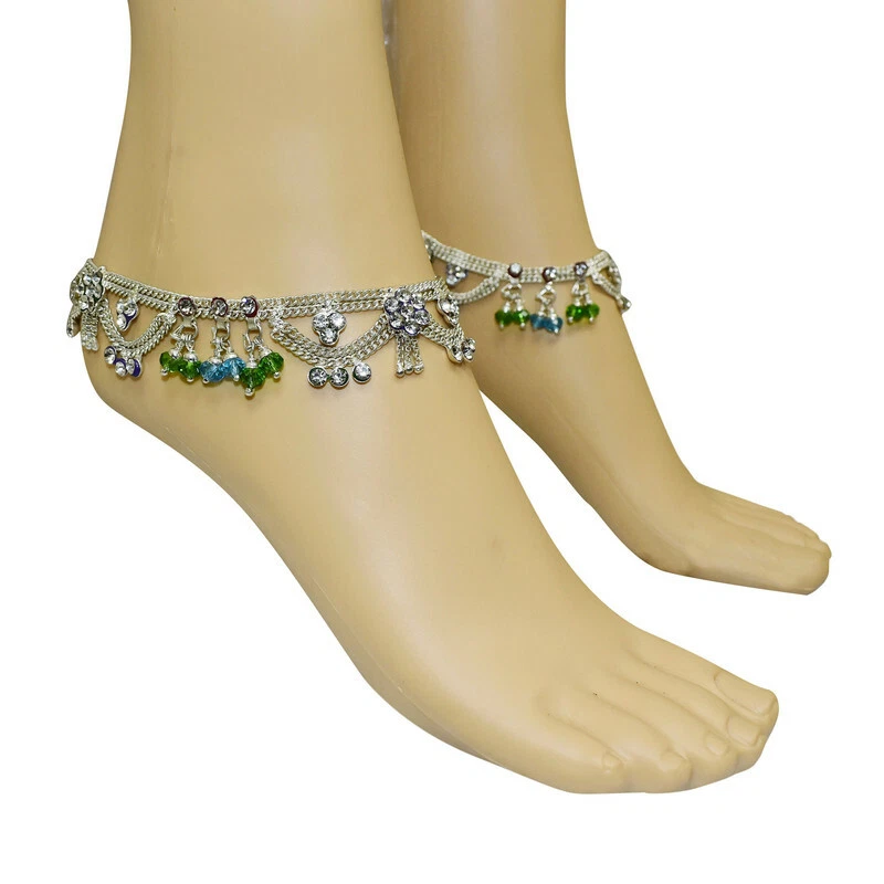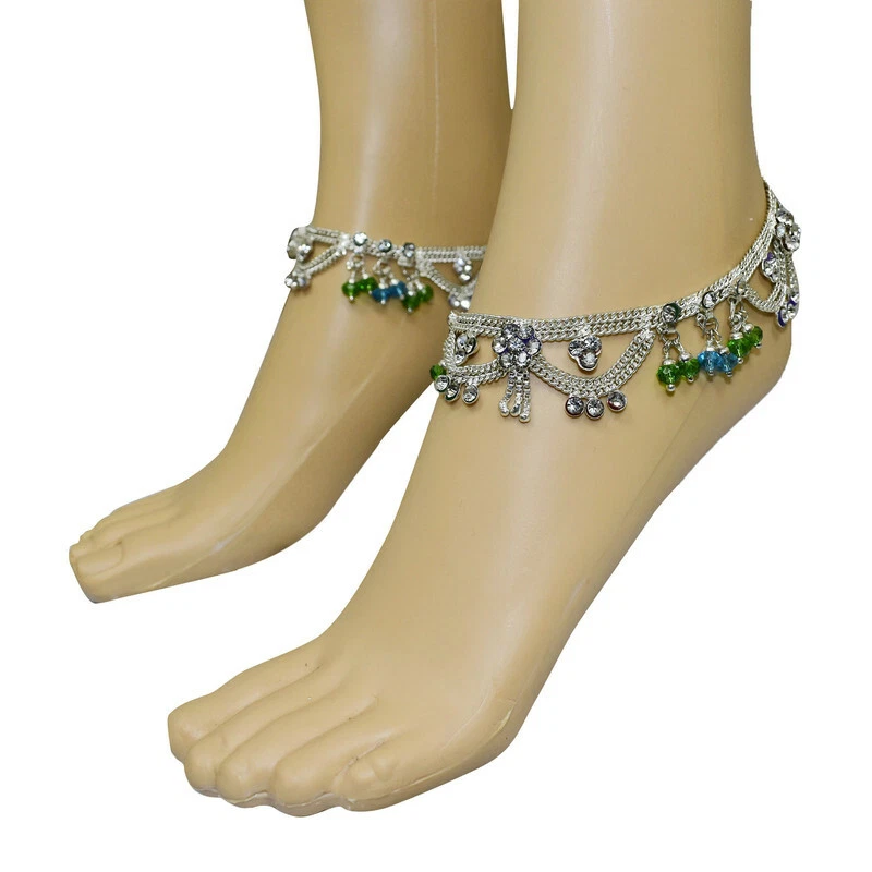 Item Description Women's Anklets Payal Indian Ankle Bracelets Chain Pair Foot Jewellery Sale For:- 1 Pair Size:- Length:-26cm x Width:-2.5cm (Approx) Material:- Metal Color:- Silver Closure:- Hook Type:- Anklets Main Stone:- Artificial Stones & Beads About This Item New Traditional Style Anklet For Women And Girls. Ethnic Significance:- Brides Wear It To Draw Attention To And Decorate Their Feet Bells Or Chimes Make A Soft Sound When The Bride Walks Traditionally Payals Are Worn In Both Feet. Style Tip:- Perfect For Spring And Summer Wear.Compliments Most Outfits.Casual Chic Everyday Wear. Perfect Traditional Anklet Contemporary Look,Ideal For Any Ethnic Outfits Like Saree,Lehenga,Gowns,Bridal Wear,Party, Festival,Any Special Occasion, Dance Or As Fashion Novelty Costume Accessories. Ideal For:- Christmas,Thanks Giving,New Year,Valentine,Birthday,Anniversary Or Any Occasion,Gift For Someone You Love Jewellery Care:- Can Be Used In Water But Dry Completely Before Storing. Note:-Buyers Will Be Responsible For Pay Their Country'S Custom Duties Charge, Import Charges And Other Charges (If Applicable).