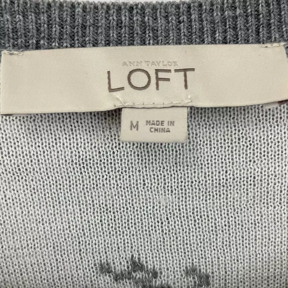 Loft holiday sweater. Gray with white reindeer print. Wool blend. Size small. Excellent preowned condition. Measurements are taken when laid flat and are approximate: armpit to armpit 18.5 inches, length from shoulder 25.5 inches.