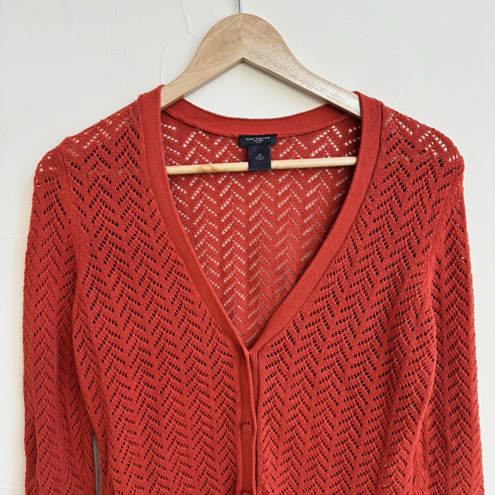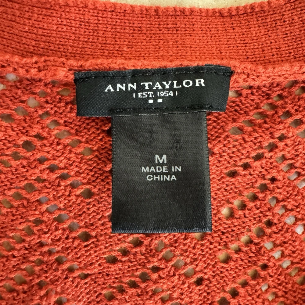Ann Taylor Orange V Neck 3/4 Sleeve Button Front Open Knit Womens Size M Sweater Condition is pre-owned ~ view photos ~ no visible flaws Color: Orange Size: Medium **Please see all pictures for full item condition and details.** **Please feel free to message me with questions or additional item photo requests** TH1378 Payment: All payments are handled through eBay payments. I do not accept any other form of payment. Taxes and fees will be applied at checkout and collected by eBay. Returns: If you decide you do not want the item, please contact me within 30 days of receiving your item(s). Items must be returned in their original condition (no signs of wear, CLEAN, with tags and packaging attached or intact, if applicable). Once I receive your item in its original condition, I will issue a refund for the cost of the item. If item is not returned in its original condition or if the item has signs of wear, I will deduct the appropriate amount for cleaning, repair, or replacement. International Returns are handled through Ebay. Business Policies: Buyer is responsible for the collection of package after tracking shows delivery. I will offer refunds for packages lost by USPS, but I will NOT offer refunds if USPS tracking shows delivery to the buyer.