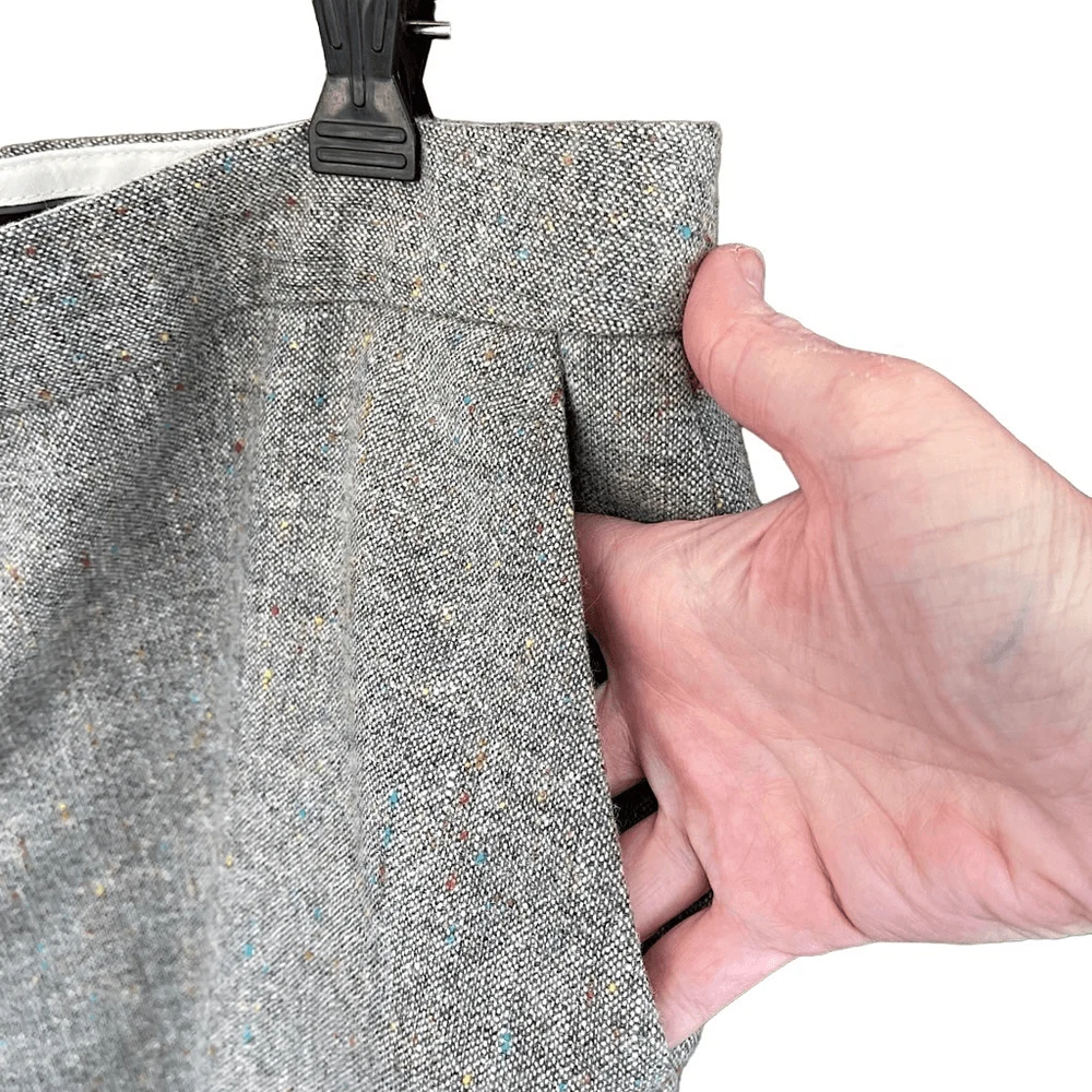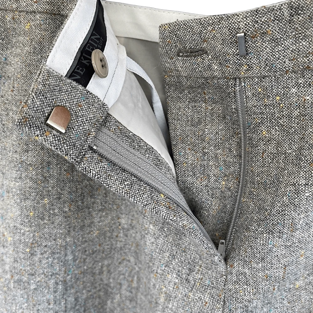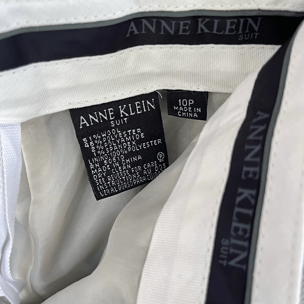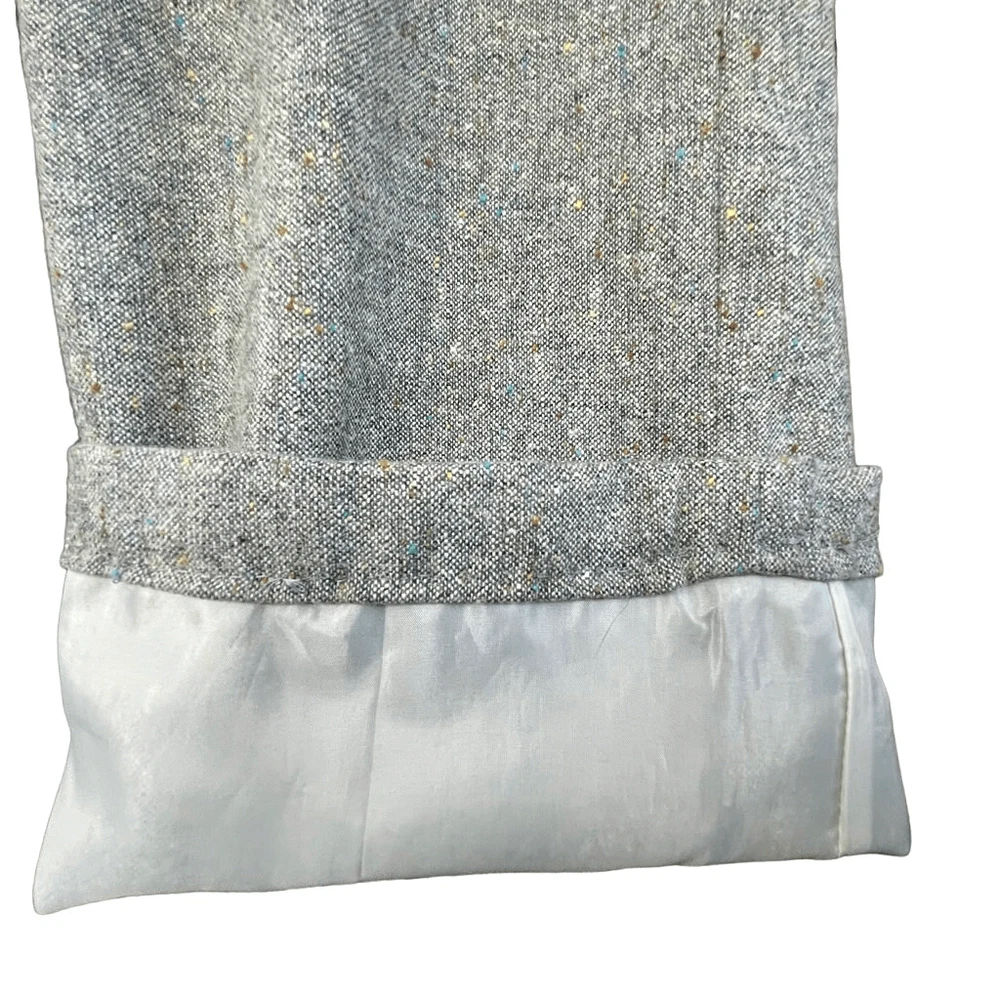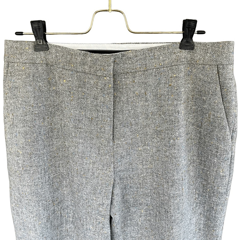 Anne Klein Wool Blend Gray Color Fleck Suit Trousers Cropped/Hemmed — SZ 10 EUC Gorgeous Classic Wool Blend Trousers with Rainbow Color Flecks throughout weave. Colors add very pretty brightness to neutral heather gray! High Rise and entirely lined NOTE: These were nicely hemmed for personal length or for stylish cropped look! I think it can be removed, as fabric wasn’t cut (from what I see), just folded. See closeups. They are Petite size, so original inseam may have been 26.5” Approx measurements 10 Petite (Lay Flat) Waist — 16“ Inseam — 24“ Rise — 11” Hem Width — 1.25” KINDLY MEASURE AGAINST PANTS THAT CURRENTLY FIT (not against body). We both want this item to work for you! Flat waist line with zip, button & double slide hook closure Sleek slash hip pockets & faux back pockets Anne Klein quality suit tailoring for sleek & slimming look REASONABLE OFFERS ALWAYS WELCOMED #cropped #designer #neutral #hemmed #suitpants #dresspants #lined #classic #stylish INV GKA7