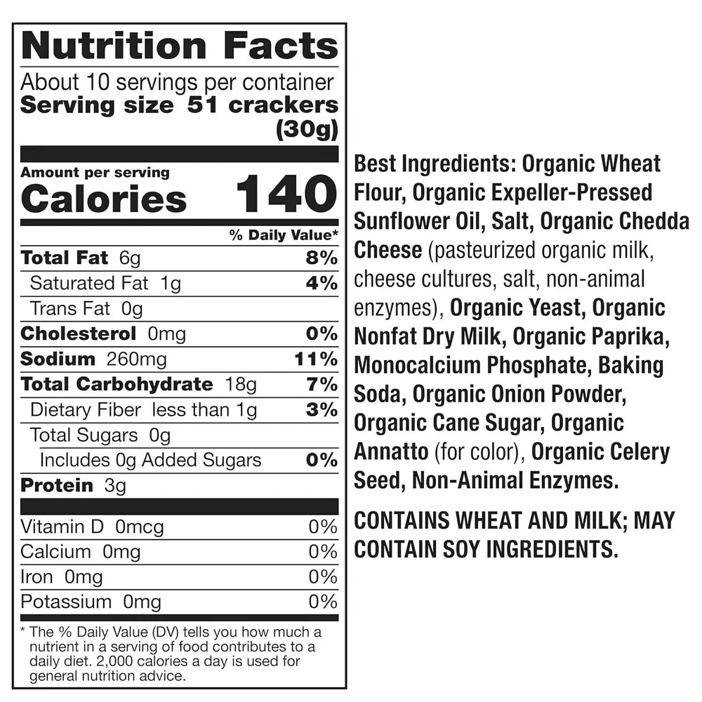 Annie's Organic Cheddar Bunnies Baked Snack Crackers, 11.25 oz BAKED SNACK CRACKERS: Crunchy, cheesy and totally delicious bunny-shaped cheese crackers that kids and adults will love WHOLESOME INGREDIENTS: No artificial flavors or synthetic colors CERTIFIED ORGANIC: Organic cheese from cows raised without antibiotics or synthetic hormones QUICK & EASY SNACK: These crackers are great for lunches, road trip snacks and more CONTAINS: 11.25 oz ---BAKED SNACK CRACKERS: Crunchy, cheesy and totally delicious bunny-shaped cheese crackers that kids and adults will love ---WHOLESOME INGREDIENTS: No artificial flavors or synthetic colors ---CERTIFIED ORGANIC: Organic cheese from cows raised without antibiotics or synthetic hormones ---QUICK & EASY SNACK: These crackers are great for lunches, road trip snacks and more ---CONTAINS: 11.25 oz Annie's Organic Cheddar Bunnies Baked Snack Crackers, 11.25 oz BAKED SNACK CRACKERS: Crunchy, cheesy and totally delicious bunny-shaped cheese crackers that kids and adults will love WHOLESOME INGREDIENTS: No artificial flavors or synthetic colors CERTIFIED ORGANIC: Organic cheese from cows raised without antibiotics or synthetic hormones QUICK & EASY SNACK: These crackers are great for lunches, road trip snacks and more CONTAINS: 11.25 oz BAKED SNACK CRACKERS: Crunchy, cheesy and totally delicious bunny-shaped cheese crackers that kids and adults will love WHOLESOME INGREDIENTS: No artificial flavors or synthetic colors CERTIFIED ORGANIC: Organic cheese from cows raised without antibiotics or synthetic hormones QUICK & EASY SNACK: These crackers are great for lunches, road trip snacks and more CONTAINS: 11.25 oz