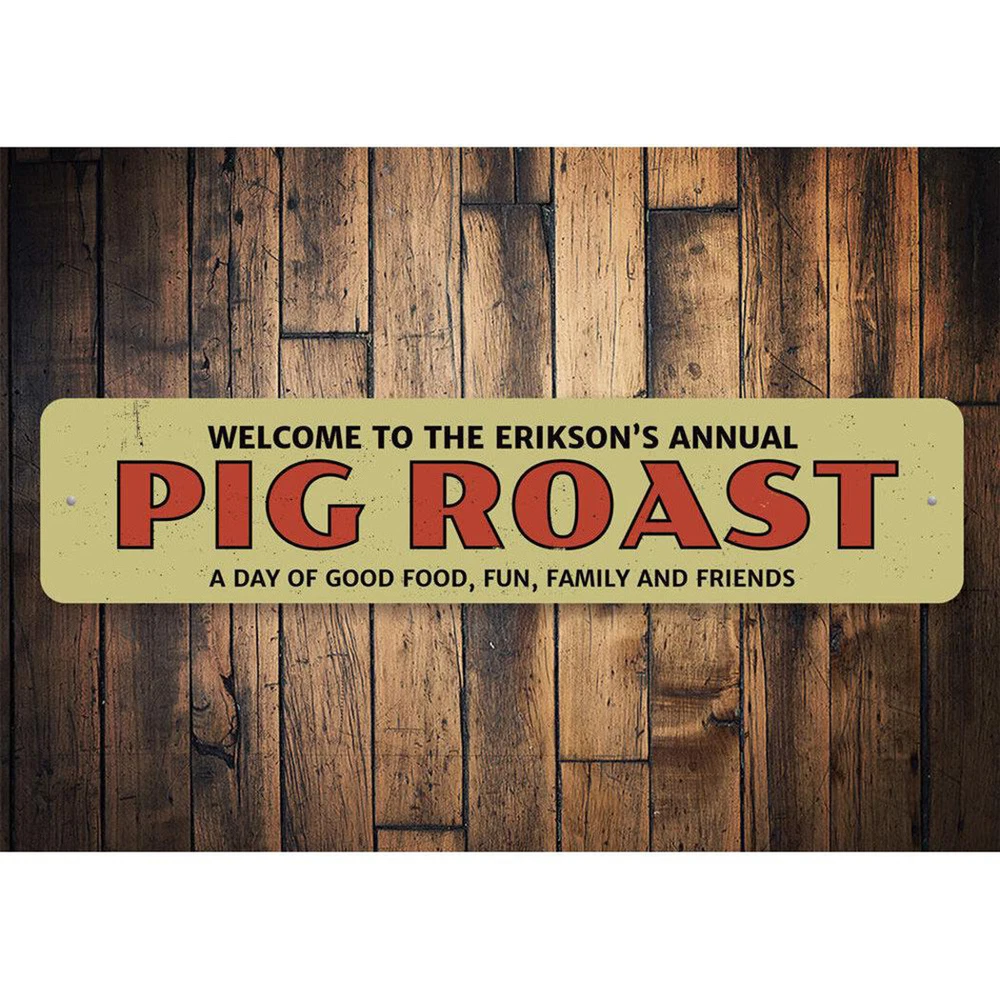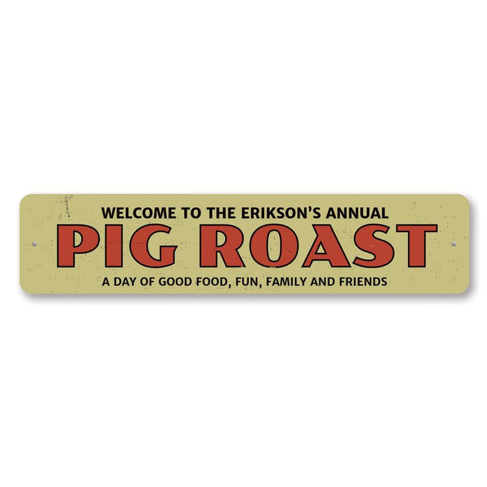 The Lizton Sign Shop Product Description Annual Pig Roast Sign, Personalized Welcome BBQ Sign, Custom Metal Decor Sign **there may be slight variations in color and text spacing, however your sign will be very similar to the image above. Quality Aluminum Street Signs Sign Information Aluminum Brand New Sign Comes with rounded corners and pre-drilled for easy hanging. We use the highest quality materials - 100% USA-made! Great Gift Idea - Our signs truly make a one of a kind gift. Personalize the sign with the text you want to add. Custom text for the sign can be sent to us via email. A BRAND NEW SIGN!! All of our street signs are made of premium materials. The sign itself is made of aluminum and will never rust providing years of enjoyment indoors and outdoors. No Cheap plastic!! The Lizton Sign Shop specializes in quality personalized custom aluminum signs for any occasion. These make the perfect sign for any man cave, office, basement, garage, college dorm, kids bedroom, game room, bar, pub, tavern or countless other places. *Colors may vary slightly from one computer screen to the next but the image should be very close. All content and designs are subject to copyright and may not be reproduced in any form. Payment Methods We would prefer payment to be made through paypal but we also accept all major credit cards. If you select the credit card option please contact us after you make your purchase and we can walk you through the steps to make a secure payment. Return Policies We will accept returns within 30 days of the purchase date. The buyer is responsible for any costs to return the item or items. Returns will only be accepted for items that were damaged in shipping or if we made an error in the manufacturing of your item, i.e. spelling error.