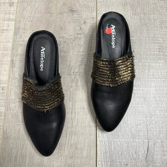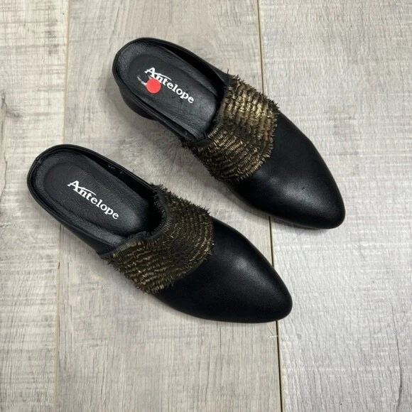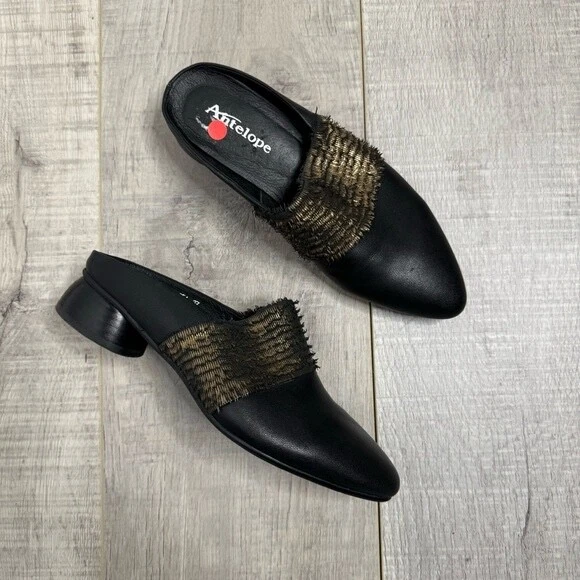 Antelope Black & Gold Heeled Mules Shoes Size 37 (7)
