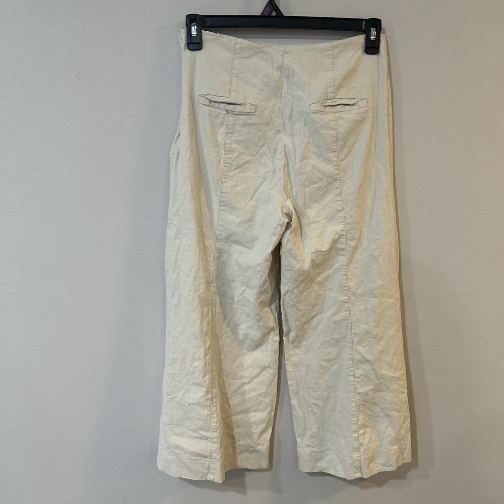 Anthropologie Linen Blend Ivory Cropped Wide Leg Side Button Pants Size 4 Small. Condition is Pre-owned. Shipped with USPS Ground Advantage.