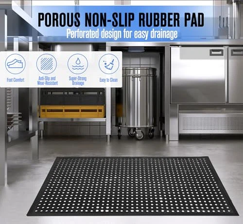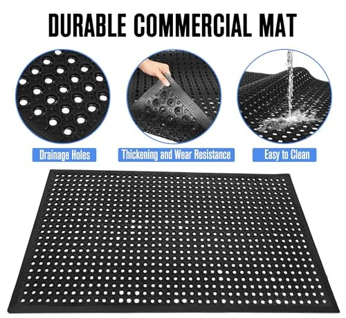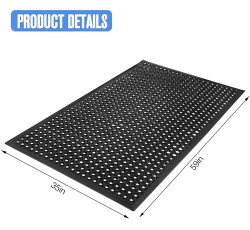 Return Policy Fast Delivery Trusted seller Anti Fatigue Mat, 36"x60" Rubber Floor Mat, Non-Slip Rubber Floor Mat Heavy Duty Mats for Outdoor Restaurant Kitchen Bar (Black) Product Description 【Non-slip Drainage Mat】Anti-slip drainage mat design – engineered with large hexagonal holes, this rubber drainage mat effectively captures and drains liquids, preventing dangerous puddles from forming. This makes it ideal for use as a commercial kitchen mat w grease and water can cause hazardous slipping. Its anti-slip surface keeps the mat securely in place, ensuring safety in bustling environments. 【Drains and Dries out Outside Mat】 Designed for tough conditions, this mat excels as a bar mat for floor or as an outdoor drainage mat for patios, decks, or entrances. Its large drainage holes promote rapid drying, preventing standing water from causing damage or slippery surfaces. 【Multi-Functional 】The rubber floor mat perfect for both indoor and outdoor settings such as shops, restaurants, patios, boats, bars, and homes. This 36"x60" heavy-duty mat offers comfort and protection, while being easy to clean and ideal for high-traffic areas. 【Heavy Duty Rubber Floor Mat】Made of high-grade rubber, this drainage mat provides superior durability and long lasting performance. Weighing 14.3 LB, Size: 60 x 36 x 0.4 in. 【Easy to Clean】Wipe or hose clean with soap and water. This mat is sustainable, durable, and resistant to water. Its easy to clean surface ensures that dirt, grease, and liquids can be quickly washed away. Shipping Returns Payment Shipping Shipping is FREE to all addresses other than APO/PO boxes in the lower 48 states. All our stock ships from US-based warehouses. Shipped via USPS or UPS (depending on location and package weight) Unless stated otherwise, all orders will ship within 24-72 hours of your payment being processed. Check our feedback to see the great reviews of FAST shipping we offer. Returns Seller does not accept returns Payment We currently accept payment via eBay managed payments only. Once payment is cleared, we will dispatch your shipment within 1-3 business days. Please refer to the "Shipping" tab for more information regarding shipping speed to your destination.