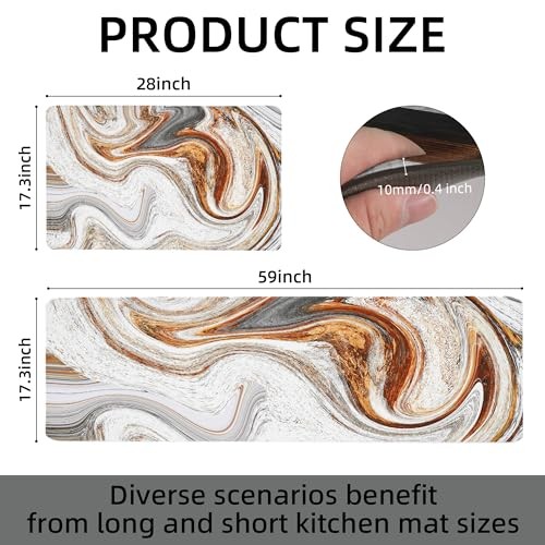 Return Policy Fast Delivery Trusted seller Kitchen Mats for Floor Anti Fatigue Floor Marble Cushioned Memory Foam Non Slip PVC Leather Padded Comfort Standing Rugs Set of 2, 17.3x28+17.3x59 Inch, 0.4 Inch Thick Product Description 【Experience Ultimate Comfort】Step onto our anti fatigue mats for kitchen floor and feel the difference! Made with high-quality PVC and extra-thick (0.4 inch) foam, these mats provide a soft, cushioned surface that relieves foot, knee, and back pain caused by standing on hard floors. You'll feel like you're standing on a soft cloud! 【Stylish Design】Upgrade your kitchen decor with our marble kitchen mats! these mats add a touch of elegance and modernity to any kitchen. 【Perfect Fit for Any Space】Our anti fatigue cushioned memory foam kitchen mat set includes 1 large rug (17.3 x 59 inches), making them the perfect size for most areas. Whether you need a mat for your laundry room, bathroom, or kitchen, this mats will fit perfectly and look great in any space! 【Easy to Clean and Maintain】Our heavy-duty kitchen rugs non slip are designed to repel water, liquids, oils, and stains, making them incredibly easy to clean. Simply wipe dirt off with a damp cloth or use a hand-held vacuum to keep them looking like new! 【WARNING!!】Open rug fully and place on even, flat, dry floor. Water under rug may result in slippage. Rug must be placed on dry surface during use. If the anti fatigue mat you received has a crease on the back (crease is caused by the packaging method), don’t worry this is not a quality issue. Just spread out the kitchen mat and lay it flat and the crease will disappear after a few days. Shipping Returns Payment Shipping Shipping is FREE to all addresses other than APO/PO boxes in the lower 48 states. All our stock ships from US-based warehouses. Shipped via USPS or UPS (depending on location and package weight) Unless stated otherwise, all orders will ship within 24-72 hours of your payment being processed. Check our feedback to see the great reviews of FAST shipping we offer. Returns Seller does not accept returns Payment We currently accept payment via eBay managed payments only. Once payment is cleared, we will dispatch your shipment within 1-3 business days. Please refer to the "Shipping" tab for more information regarding shipping speed to your destination.