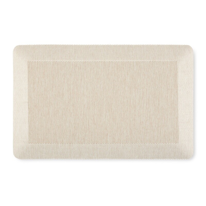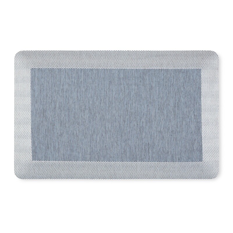 Bring comfort and style into your decor with the Mira Air Mat. This kitchen mat offers a modern look that will add style to your décor. Machine made of textured polyester, this kitchen mat is ideal for wherever you may often stand for relief while you work, cook or clean. Enhanced with a slip resistant backing for a safe and secured step on any flat surface. This mat offers versatile use and can be used in the kitchen, bathroom, laundry room or office. BRING MARTHA STEWART'S STYLE INTO YOUR HOME: The Mira Air Mat boosts an elevated style while offering the ultimate comfort and support to your feet. WATER, STAIN & OIL RESISTANT: This mat is constructed with 100% Polyester textured and durable top layer that is water, stain and oil resistant. This mat is also mold and mildew resistant. ANTI-FATIGUE AIR-INFUSED: This cushioned mat is constructed with a middle layer of air-infused memory foam providing the ultimate anti-fatigue comfort for your feet, back and legs. DURABLE AND SLIP RESISTANT: This kitchen mat is constructed with a skid-resistant SBR backing that provides a safe and secure surface for you to walk and step on. VERSATILE USE: Update your kitchen or office space with this mat. Great to use under the kitchen sink, along the stove, near your workspace or even in the laundry room. EASY CARE: These kitchen mats are easy to clean by wiping with a damp cloth and mild detergent, air dry. EASY CARE: These kitchen mats are easy to clean by wiping with a damp cloth and mild detergent, air dry.
