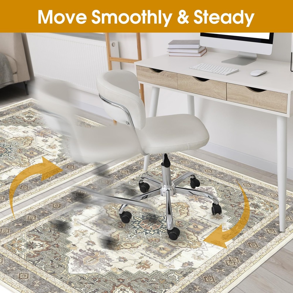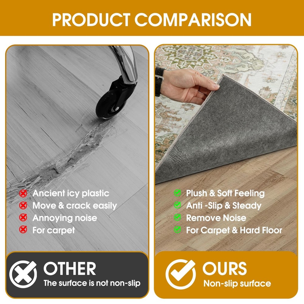 Office Chair Mat WITH NON-SLIP PAD: 's Hardwood Chair Mats have a non-slip backing specifically designed to fit office chairs. The rubberized non-slip backing keeps the chair mat firmly attached to the floor and prevents the chair mat from moving when the chair slides. This makes it safer and more reliable to use. ANTI-SCRATCH: In order to effectively protect the floor in the chair area, it is recommended that you use a chair mat to slow down the damage to the floor caused by the pulleys on the chair. PATTERN DESIGN: Our pattern is designed to fit the chair mat original design. If you are tired of transparent or solid color office chair mats you can try using office chair mats with patterns. This pattern is vintage and colorful, suitable for all styles of office style, can add interesting elements to the monotonous office. FIT FOR FLOORS: Our chair mats for carpet are ergonomically designed to fit a variety of floors and fit well on the floor, effectively minimizing curling and shifting. It is perfect for hardwood floors, tile, laminate and linoleum. EASY TO CLEAN: The surface of the chair mat for carpet is densely woven with good abrasion and stain resistance. You can use a vacuum cleaner or sweeper robot to clean it on a daily basis. PET FRIENDLY: Unlike other Hardwood Chair Mats, our this Hardwood Chair Mat has a good warm touch and is pet friendly.
