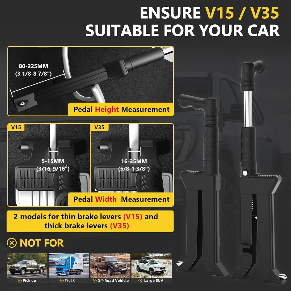 Brake Pedal Lock, Anti Theft Car Device Clutch V15, V15(5-15mm) Product Details Brand: OPSOOPI Special Feature: Auto-Lock Lock Type: Deadbolt Item dimensions L x W x H: 5 x 1.9 x 16.5 inches Material: Stainless Steel Recommended Uses For Product: Security Style: V15(5-15mm) Color: V15(5-15mm) Number of Pieces: 1 Finish Type: Powder Coated Included Components: Clutch Lock Controller Type: Hand Control Shape: U Shape Item Weight: 3.7 Pounds Control Method: Touch Model Name: V15-01 Manufacturer: OPSOOPI Part Number: Clutch Lock 01 Item Weight: 3.7 pounds Product Dimensions: 5 x 1.9 x 16.5 inches Country of Origin: China Item model number: V15-01 Size: V15 Finish: Powder Coated Special Features: Auto-Lock Batteries Included?: No Batteries Required?: No Brand: OPSOOPI Special Feature: Auto-Lock Lock Type: Deadbolt Item dimensions L x W x H: 5 x 1.9 x 16.5 inches Material: Stainless Steel 【STRONG ANTI-THEFT】- The brake pedal lock secures your clutch/brake, which prevents the thief from starting your car. The heavy duty car anti theft device is a good deterrent to keep car thieves away from your car. 【EASY TO USE】- The OPSOOPI anti theft car device only requires hand and foot cooperation and can be locked in 3s, saving you time. There is no need to bend over and lock like other car clutch lock. Easy to operate, install and remove. 【EXTRA DURABLE】- This brake lock is made of heavy stainless steel and never rusts. It is resistant to prying, sawing, hammering, drilling and other destructive tools. Simple and effective locks help make your car safer. 【EASY TO GET CAR SECURITY】- There is a detachable taper at the end of the car lock, which can be used as a broken window and self-defense tool. Each car anti-theft device is equipped with three keys, and other buyers cannot open your lock. 【UNIVERSAL FIT MOST VEHICLES】- This antitheft locking is suitable for brakes/clutches with height :100~160mm(3 15/16-6 5/16" ) and width :5~15mm( 3/16-9/16"). Our Car security anti theft easily locks under the brake pedal on most cars.