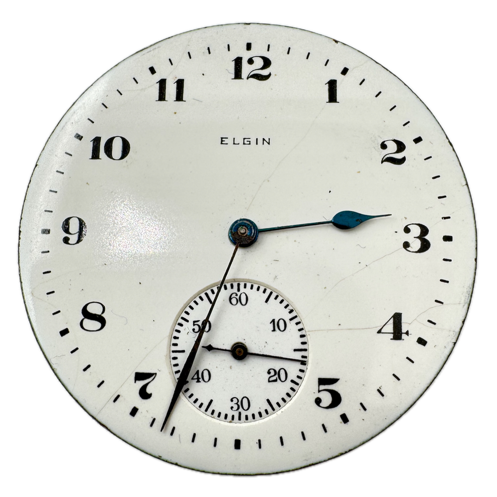 Antique 16s 1920 Elgin 15 Jewel Mechanical Pocket Watch Movement 313 USA Product Description Item: Pocket Watch Movement Brand: Elgin Movement: Mechanical Production Year: 1920 Country: USA Jewels: 15 Jewel Gender: Men's Grade: 313 Size: 16s Product Measurements Diameter: 43mm Product Condition Overall Condition: Fair, overall condition for its age. Functions: Running, but may be in need of service. This means, it can run unreliably, start or stop and timekeeping is not guaranteed. Dial: The dial has hairline crack(s) on it. Hands: There is discoloration on the hands.