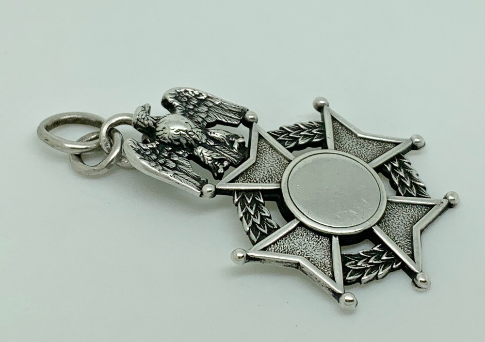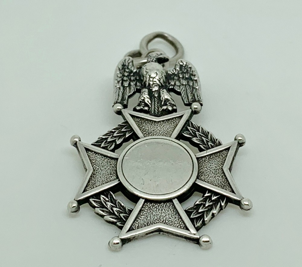 A superb antique victorian (hallmarked for 1890) english sterling silver large medal watch fob in rare design, an eagle sitting on top of a cross. A design I have never seen before and will likely never see another, it looks some like a military order! A lovely quality piece. Maker/Markings: Marked with english hallmark - JG for Joseph Gloster, Lion Passant, Anchor, Date Letter q for 1890 Condition: Very Good Used Condition, general wear/patina - Please look at photos Measurements: 2.5" drop inc bails - 1 7/8" long x 1 1/4" wide ~ 62 - 48 x 32mm Weight: 17g Combined Shipping on all items SC5658-49 Antique Victorian 1890 Sterling Silver Rare Eagle on Cross Large Medal Watch Fob
