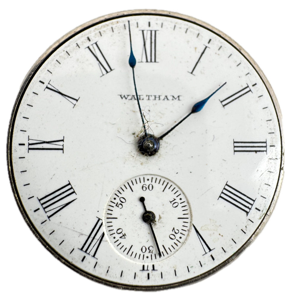 Antique 0s 1903 Waltham 15 Jewel Hunter Pocket Watch Movement 115 USA Product Description Item: Pocket Watch Movement Brand: Waltham Movement: Mechanical Production Year: 1903 Country: USA Jewels: 15 Jewel Gender: Men's Grade: 115 Size: 0s Product Measurements Diameter: 29mm Product Condition Overall Condition: Fair, overall condition for its age. Functions: Not running but the balance complete is in good condition. Dial: The dial has hairline crack(s) on it.