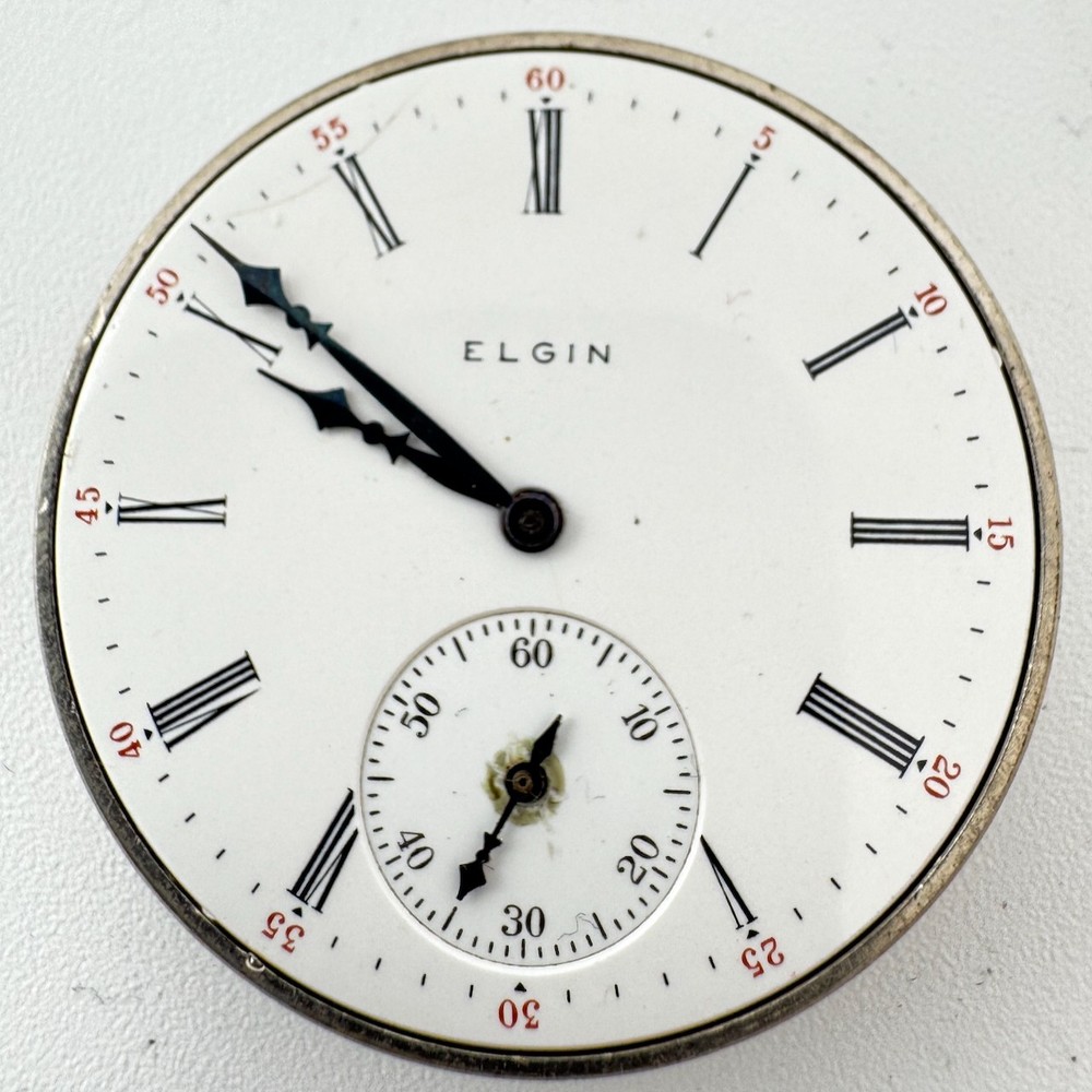 Antique 12s 1907 Elgin 15 Jewel Mechanical Hunter Pocket Watch Movement 314 USA Product Description Item: Pocket Watch Movement Brand: Elgin Movement: Mechanical Production Year: 1907 Country: USA Jewels: 15 Jewel Gender: Men's Grade: 314 Size: 12s Product Measurements Diameter: 39.5mm Product Condition Overall Condition: Fair, overall condition for its age. Functions: Not running but the balance complete is in good condition. Dial: The dial has discoloration. Hands: There is discoloration on the hands.