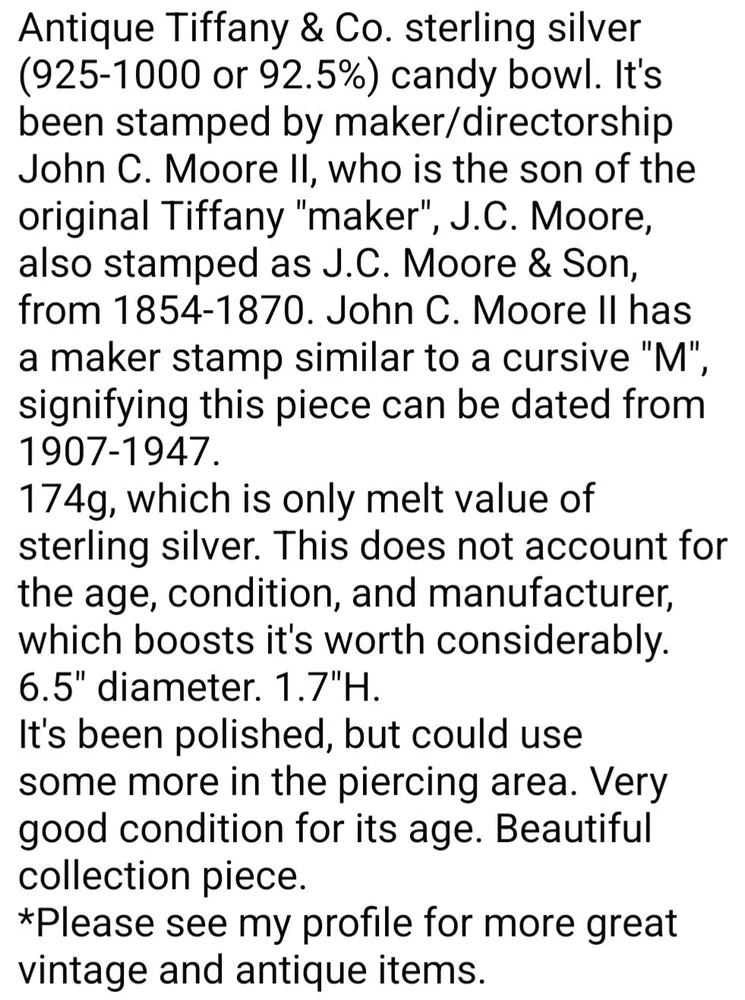 Antique 1907-1947 Tiffany & Co. Sterling Silver Candy Bowl-174g