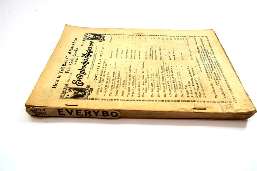 Antique 1910 EVERYBODY'S MAGAZINE from July '10 Mag MISSING FRONT & BACK COVERS This eBay listing is for a vintage/original Everybody's Magazine from July 1910 that comes as you see pictured in the listing and noted above. This magazine measures 10" tall and for it's age, it's in poor/below average overall condition because this issue is MISSING THE FRONT & BACK COVERS. The rest of the pages inside are in very good condition. Seller Location Reference - Comics Box 23 BID IN CONFIDENCE – CHECK MY FEEDBACK! My goal is your satisfaction. I leave positive feedback right after the payment is received for all orders!! If you plan to leave anything less than positive feedback and 5 stars - please let me know so that I can work out any problems that you may have. I aim to please!! SHIPPING & HANDLING FOR US BIDDERS We ship ASAP upon payment as noted above within 1 business day 99% of the time!! We normally pack up your new treasures 2 - 3 times a day and ship using USPS and Fedex Ground so that you get your items in a timely fashion. As always - there is no charge for local pickup on any of my items!! SHIPPING AND HANDLING FOR INTERNATIONAL BIDDERS Import duties, taxes and charges are not included in the item price or shipping charges. These charges are the buyer’s responsibility. Please check with your country’s customs office to determine what these additional costs will be prior to bidding/buying.” THANK YOU AND HAVE A WONDERFUL DAY!! Powered by SixBit's eCommerce Solution
