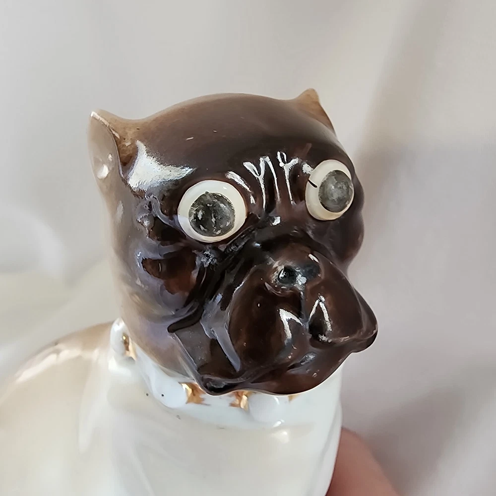 Antique 19th Century Staffordshire Pug Cat Face Figurine Meissen?