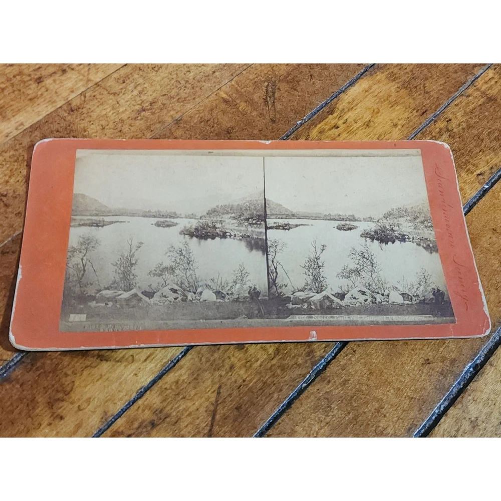 This antique stereoview card from the 19th century features a serene landscape scene, perfect for collectors of vintage photography or historical artifacts. • Antique stereoview card • 19th-century origin • Scandinavian Landscape scene • Dual images for stereoscopic view • Dimensions: 7 x 3.5 inches Shows minor edge wear and some fading consistent with age. We are always happy to combine items so that you can save on shipping