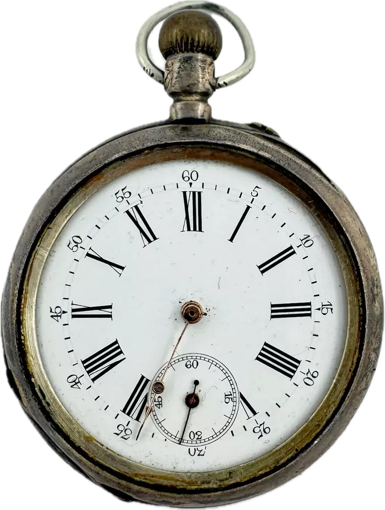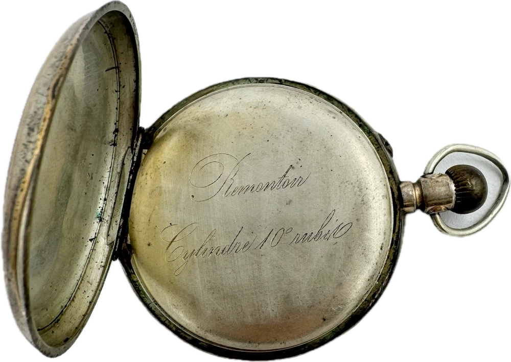 Antique 47mm Remontoir Key Wind Cylinder Escapement Pocket Watch .800 Silver Product Description Item: Pocket Watch Brand: Remontoir Movement: Key Wind Cylinder Escapement Case Material: .800 Silver Gender: Unisex Size: 47mm Product Measurements Diameter: 47mm Product Condition Ok, overall condition for its age. Not running, the balance complete is good though. There are dents and wear on the case. It is missing the crystal. It is missing the hour hand.