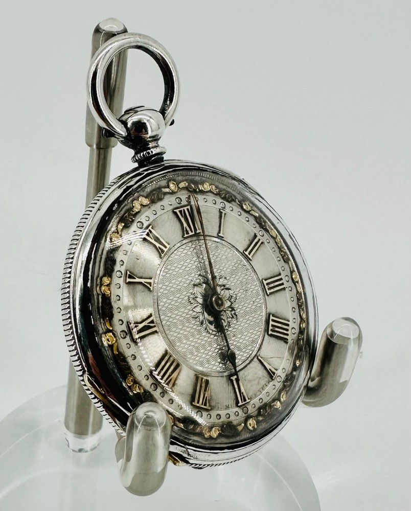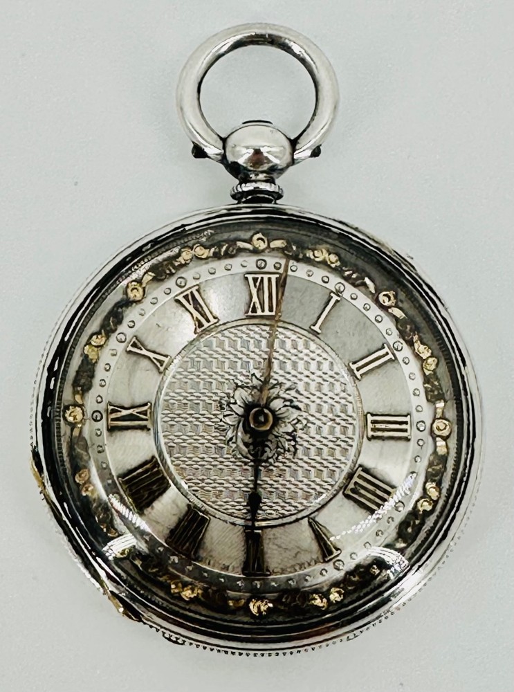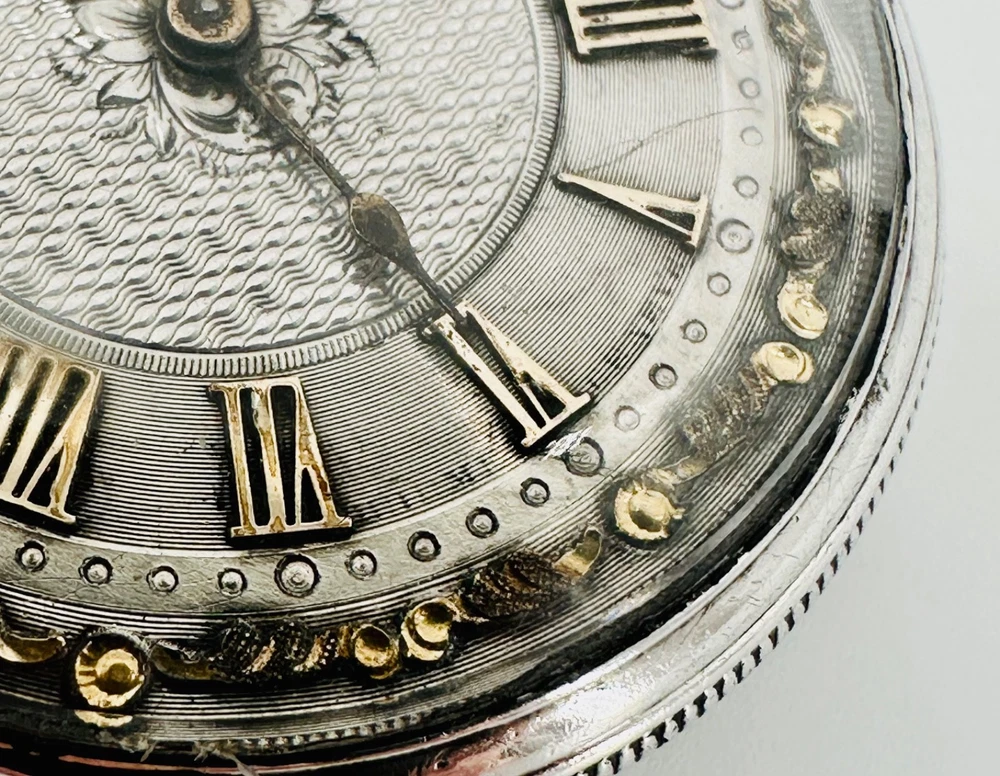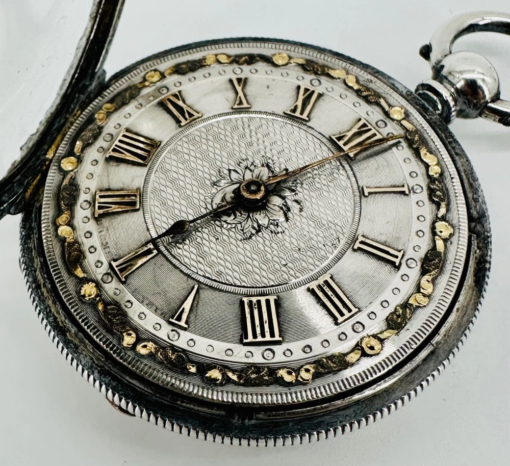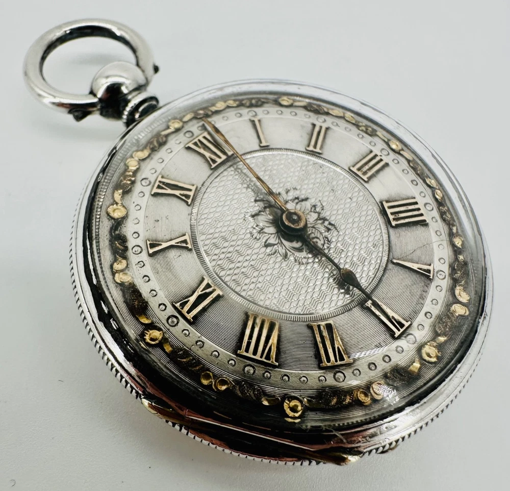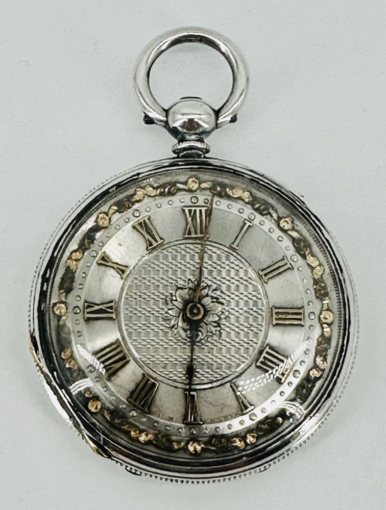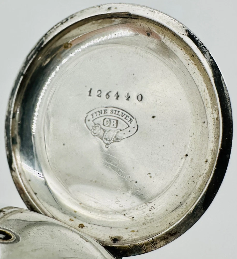Antique Baume Genève Silver Pocket Watch – Matching Serials, C.B. Marked (c.1860s–80s) A fine antique Baume Genève silver pocket watch, dating from the mid-to-late 19th century. This elegant timepiece is notable for its originality, with the case & movement carrying the same serial number (126440) . Both the movement and case are marked with Baume Genève and the initials C.B. , very likely referring to Charles Baume , a key member of the Baume family active in Geneva during this period. The silver case is beautifully engine-turned with ornate engraving to the rear and carries the “FINE SILVER CB" mark. The silver dial features Roman numerals with decorative gilt accents, retaining a classic mid-19th century style. The watch is key wound and working , though sold as seen with no key included. This is a rare opportunity to acquire an early Baume Genève pocket watch with such clear provenance and originality, predating the firm’s later partnership that became Baume & Mercier . Brief History of the Maker: The Baume company was founded in Les Bois, Switzerland, in the 1830s by Louis-Victor and Célestin Baume. By the mid-19th century, the firm had established a strong reputation in Geneva and London, producing high-quality timepieces. Members of the Baume family, including Charles Baume, were instrumental in expanding the business during this period. In 1918, the company entered into partnership with Paul Mercier, forming the renowned brand Baume & Mercier , still celebrated today. Key Details: Maker: Baume Genève Case: Solid silver, marked Fine Silver CB , serial 126440 Movement: Key wound, signed Baume Genève C.B. , serial 126440 Dial: Silvered with Roman numerals and decorative gilt details Case Diameter: 37.1mm (approx.) Condition: Excellent overall – working and all-original with matching serials Condition: Working order Excellent condition for age No key included Original case, movement, and dial with matching serials Summary: A highly collectible 19th century Baume Geneve silver pocket watch , in excellent original condition with matching serial numbers and C.B. markings on both case and movement. Likely dating to the 1860s–1880s , this piece represents an important part of Baume’s early history before becoming Baume & Mercier. Postage & Shipping: As usual, this item will be packaged carefully and dispatched with tracking. International shipping is available upon request. US buyers: Please be aware that import duties, taxes or brokerage fees may be charged on arrival. These are set by U.S. Customs and your state and are payable by the buyer. International buyers: Similar import charges may apply depending on your location and local rules. We cannot declare a lower value or mark items as gifts on customs declarations.
