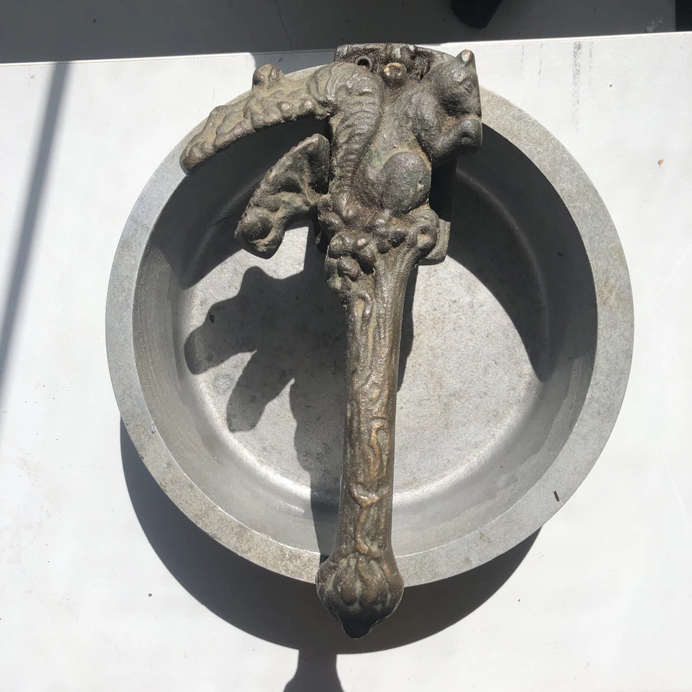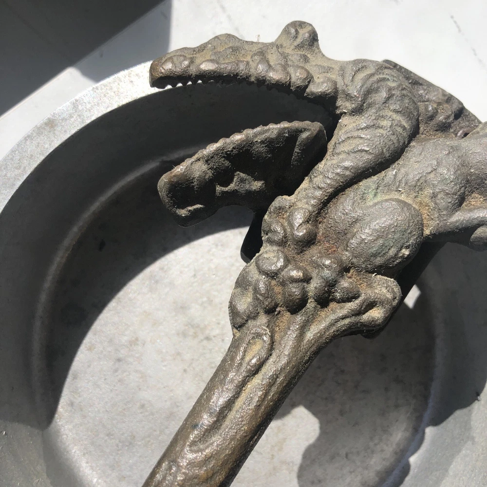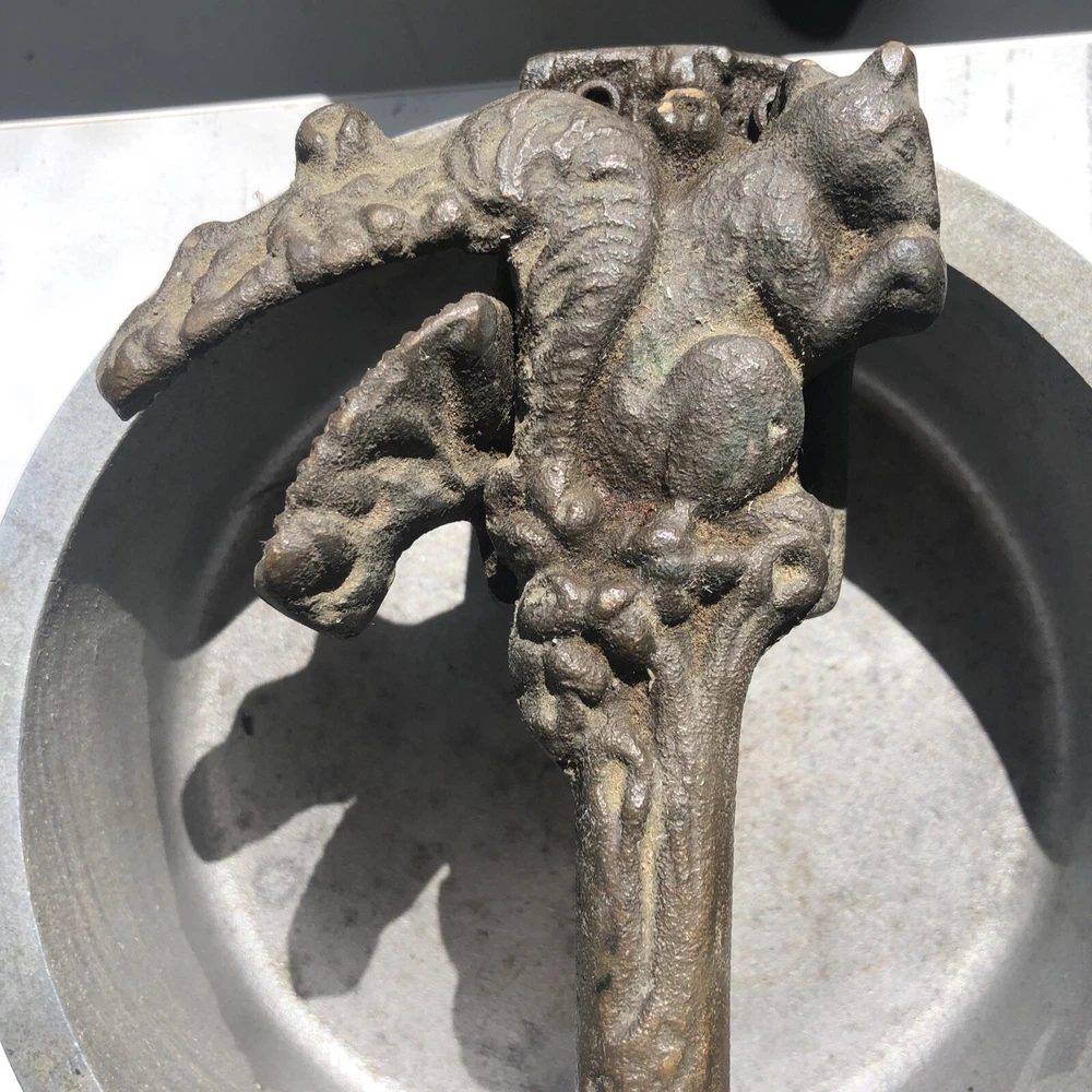 Antique Brass Handle Nut Cracker With Bowl Carved Squirrel Nut Cracker