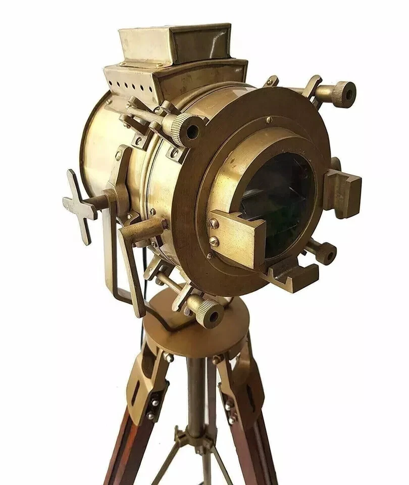 DESCRIPTION Material Used : Wood, Steel, Aluminum & Glass Color : Antique Brass & Brown Size : Head Size:10" X 9" Inches, Height Maximum:45" inches Weight : 4.8 kg Approx. Usage : Decoration, Floor Search Light, corner lamp, corner corner light Packing: Packed in a package, Corrugated Export Packaging Wiring : In accordance with national standards (AU, EU, UK, US) You can set it in any place you need, such as bedroom, living room, reading corner, apartment, music room, media room, painting room, office and so on. SOLD BY MEDIEVAL REPLICAS