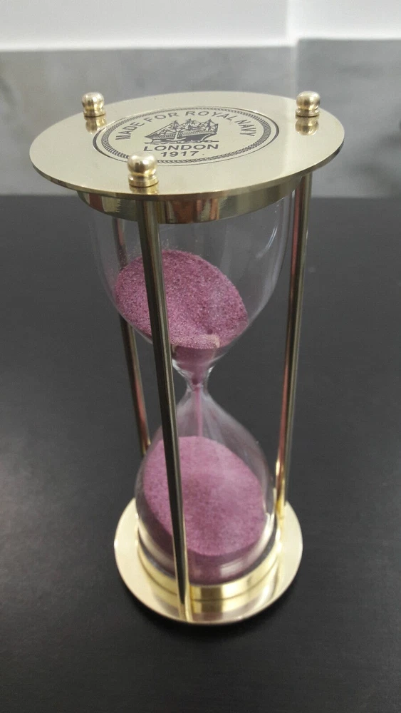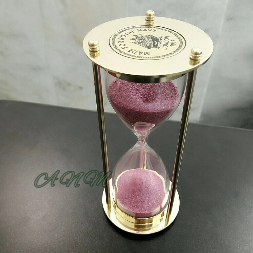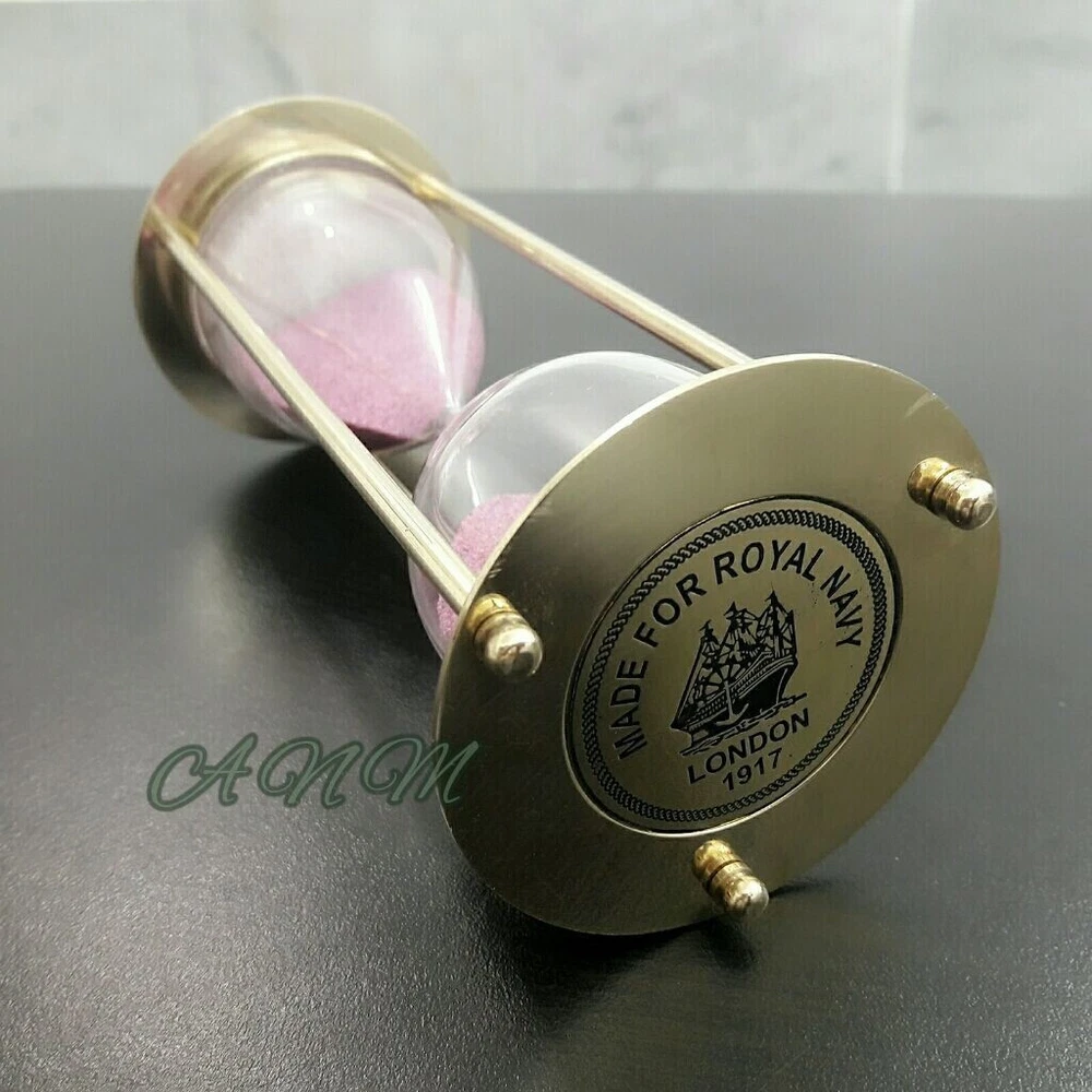 Description: SAND TIMER MADE FOR ROYAL NAVY LONDON 1917 ANTIQUE BRASS NAUTICAL MARITIME HOURGLASS SAND TIMER SOLID BRASS MADE TABLE TOP DECORATIVE ITEM VERY BEAUTIFUL GIFT ITEM VINTAGE & COLLECTIBLE SIZE - 16 cm ( 6.25 Inch )