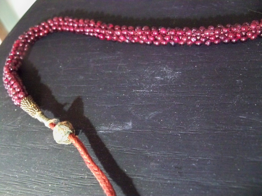 This antique garnet prayer bead necklace is a stunning piece with rich character—perfect for collectors or creative upcycling. The aged silk cord and intricate beads give it a beautiful boho charm. Though sold as-is, its unique Eastern design makes it a treasure for DIY projects, doll adornment, or jewelry restoration. The deep red garnets and vintage vibe add an exotic touch. A true find for lovers of old-world craftsmanship!