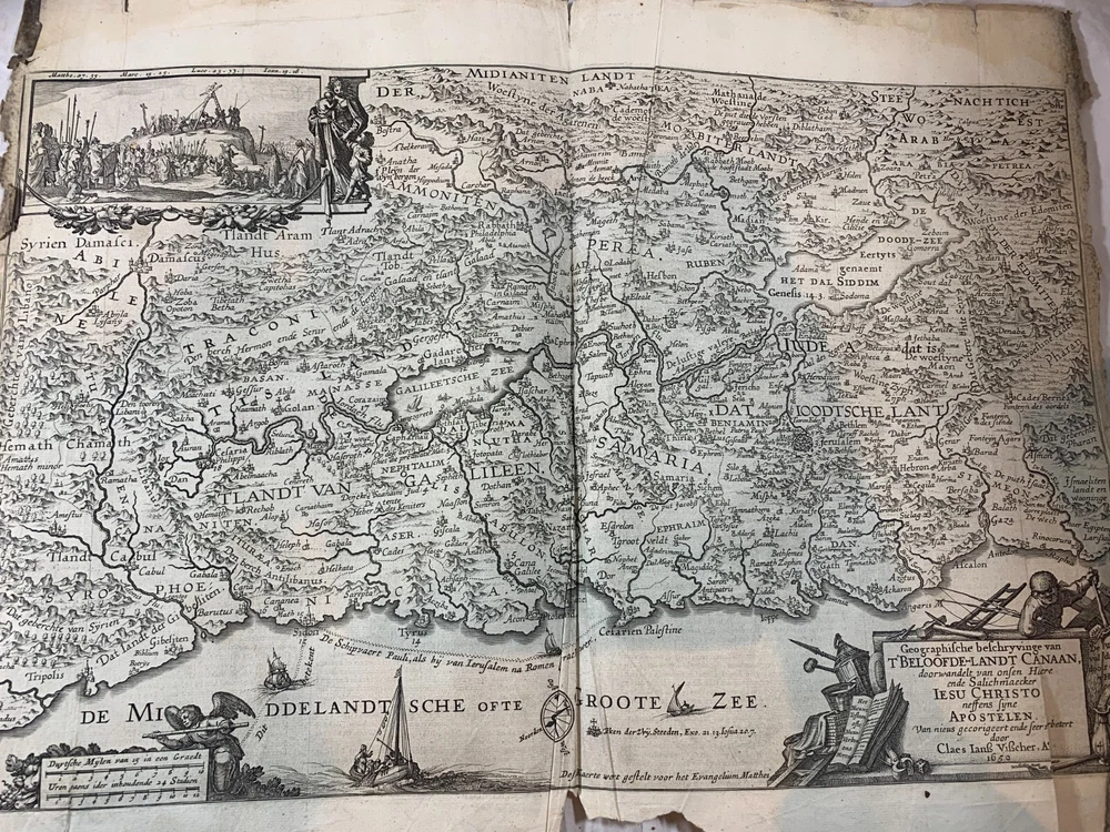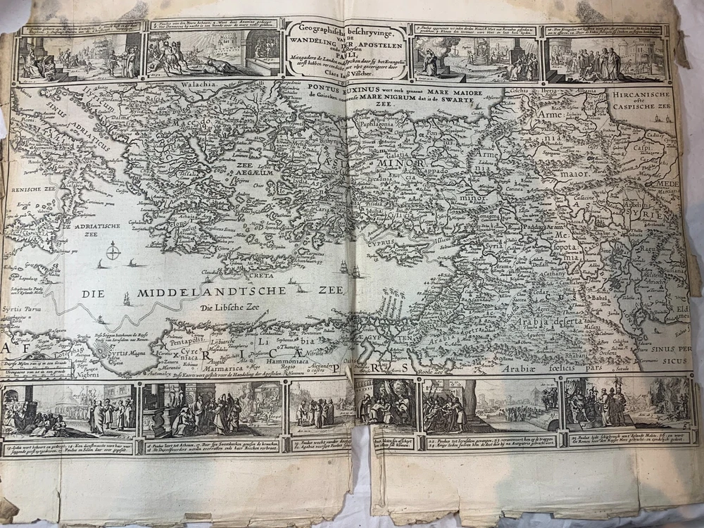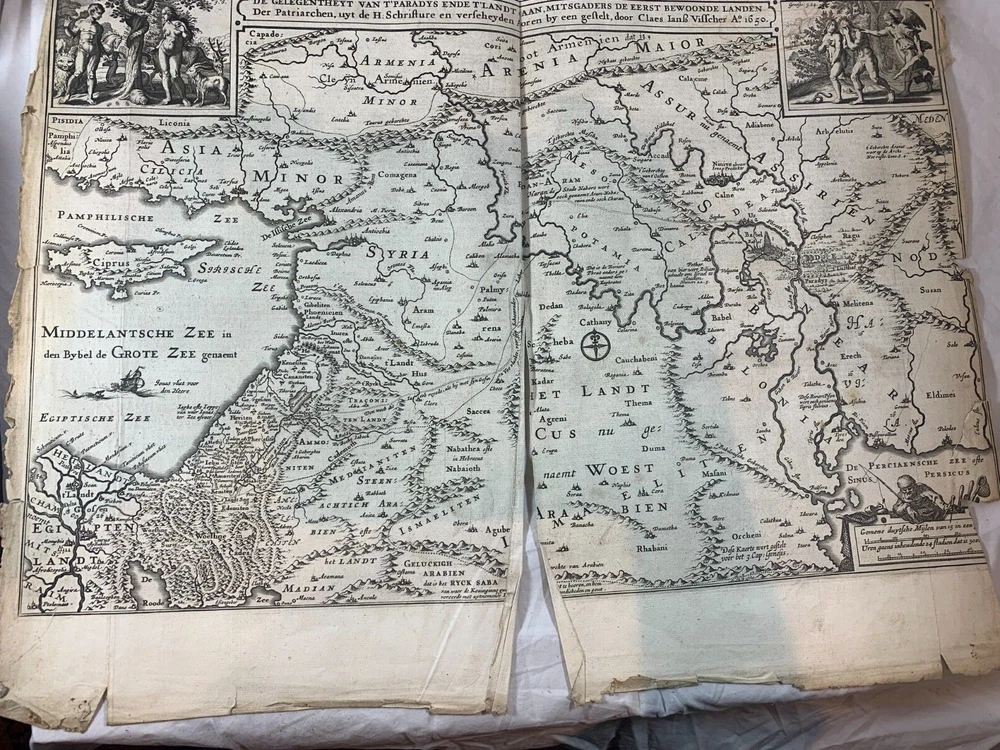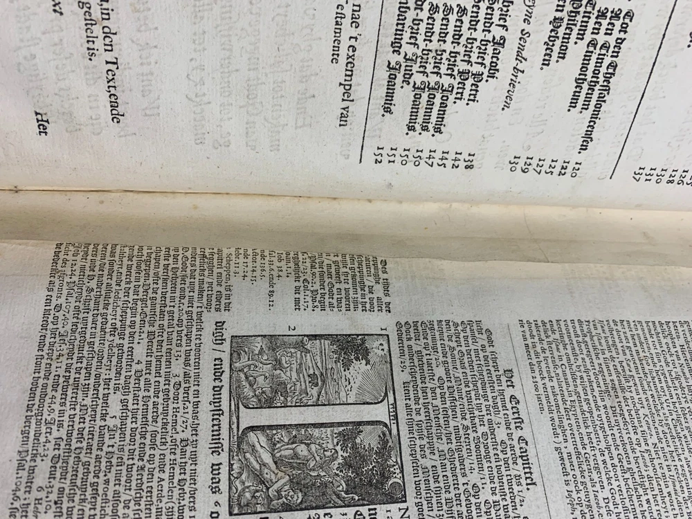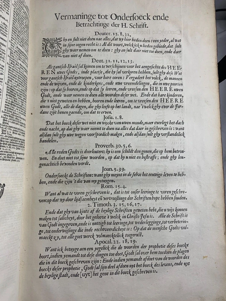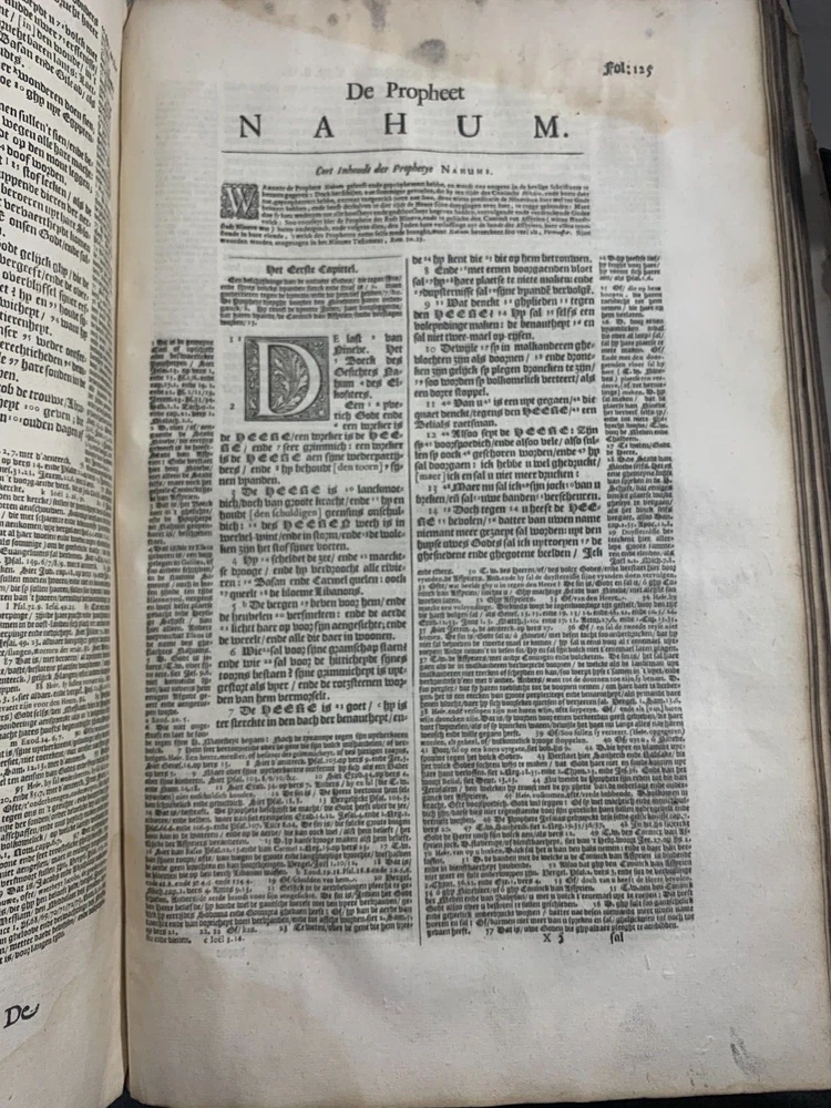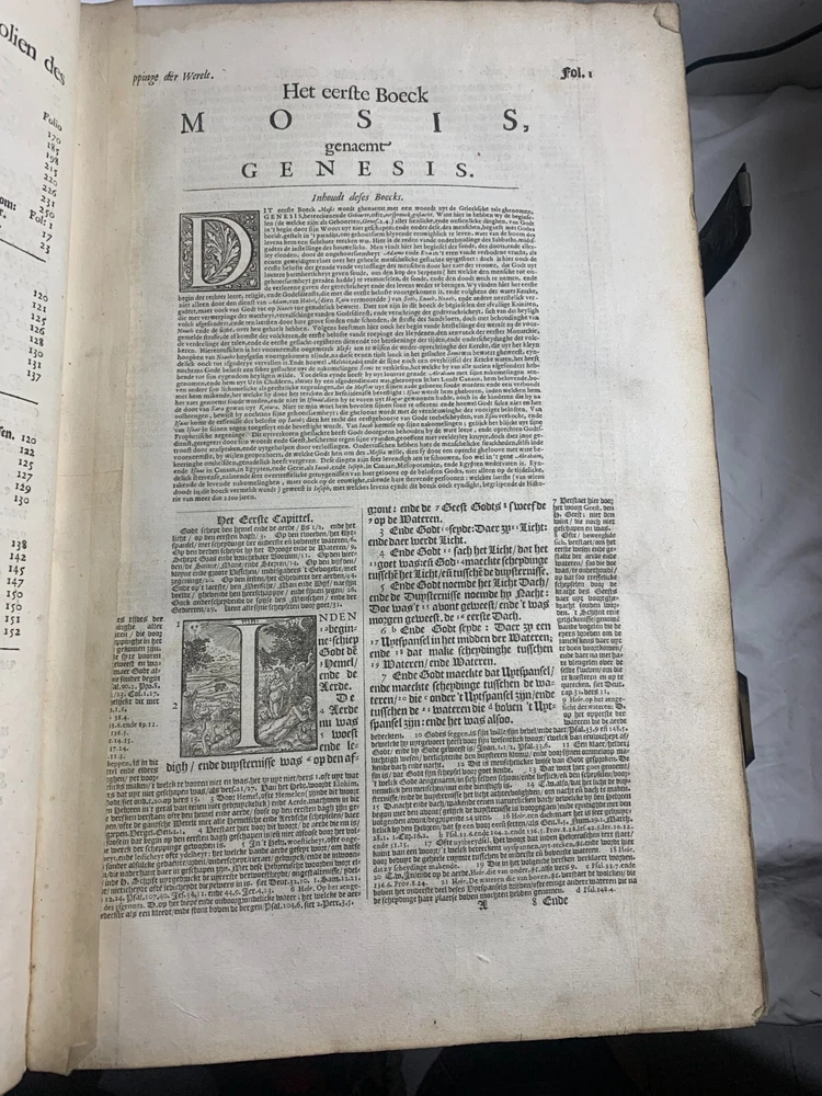 Antique Dutch Bible Statenvertaling, Large Folio, Early 18th Century, The Hague: Item Description: Offered for sale is a remarkable and historically important Dutch Statenbijbel (States Bible), printed in The Hague ( 's Gravenhage ) in the early 18th century by the widow and heirs of Hillebrandt Jacobsz van Wouw , official printers to the Staten Generael (States-General) of the Netherlands. This is a large folio-format edition of the Statenvertaling , the official Dutch Reformed Bible translation , first commissioned by the Synod of Dordrecht (1618–1619) and authorized for use throughout the Reformed Church in the Netherlands. This edition follows the standard 17th-century text and was printed for ecclesiastical or ceremonial use. Features: Translation: Statenvertaling (States-General Version) — Dutch Reformed Bible Provenance: Printed in 's Gravenhage (The Hague) Printer: Weduwe ende Erfgenamen van Hillebrandt Jacobsz van Wouw Language: Dutch Text Block Size: approx. 33 x 19 cm (13" x 7.5") Contents: Complete Old and New Testaments ( Het Oude en Nieuwe Testament ) Engraved Title Page: Architectural/ornamental design with Dutch heraldic imagery Bibliographic Reference: Large folio Dutch Statenbijbel, printed by the heirs of Hillebrandt Jacobsz van Wouw in The Hague. A later reprint of the authorized 1637 Statenvertaling, used for official and ecclesiastical purposes. Dimensions: Weight - 7.7KG Height - 44.5cm Width - 30.5cm Thickness - 13.5cm Damage (Please see above photos for reference): 1 brass clasp is missing (There should be two) Some pages are stuck together from a mixture of age and localised water damage (Please see above photos) There is foxing throughout the book (The text is still legible) The illustrations have been cut out at various points The maps have been separated at some point and the edges of the page, that the maps are on, have damage along the edges The cover is cracked with age The spine has to large points of damage (This is where I suspect the Bible was attached to a stand or pulpit) Some pages have minor tears and bent corners