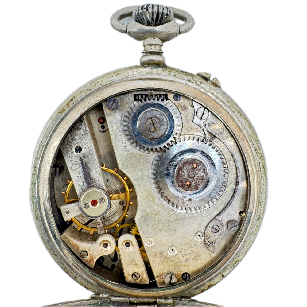 Antique 56mm Centennial Nail Set Swiss Mechanical Pocket Watch in Nickel