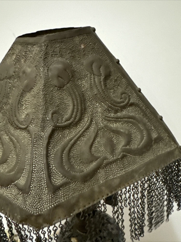 STILL HAS 2 PAPER LABELS ATTACHED. I FOUND THIS WITH THE SHADE SHOWN. SDHADE MISSING A FEW STRANDS. SHADE HAS DINGS AND WEAR. THE GLASS IS IN GREAT SHAPE. MEAURES 15.5 BY 8 INCHES WITH SHADE. GLASS ALONE IS 8 INCHES AND 5 INCHES AT THE BASE. (KC) THE SAMUELCOLLECTION I CONSIDER MYSELF AN ART PATRON. SEEKING OTHER PATRONS TO DO LONG TERM BUSINESS WITH. LIFETIME COLLECTOR/ARTIST/ ART AND ANTIQUES DEALER/ESTATE LIQUIDATOR TRAVIS SAMUEL. CALIFORNIA BASED. SAVE ME AS YOUR FAVORITE ART AND ANTIQUES DEALERS. NEW ITEMS DAILY. I BUY ESTATE COLLECTIONS. RANT PRICES ARE BASED ON AGE, QUALITY, AUCTION ANALYSIS, SUBJECT, CONDITION , OTHERS LIKE IT CURRENTLY FOR SALE, SHIPPING COSTS AND OTHER FACTORS. I CONSIDER HOW MUCH TIME EACH WORK OF ART TOOK TO MAKE. I MEASURE SKILL LEVEL. HOW LONG WOULD IT TAKE THE ARTIST TO MAKE IT. AND HOW MUCH TIME DID IT TAKE THE ARTIST TO GET THAT GOOD AT THEIR CRAFT. WHAT WOULD IT COST TO MAKE TODAY BY A PRO ARTIST ? THIS IS MY JOB AND A TRAVEL FAR TO GET EACH OF THESE THINGS. ALMOST NOWHERE TO BUY ITEMS LIKE THESE IN SAN DIEGO. NO SHOPS LEFT TO SHOP. I DO NOT AIM OR ASPIRE TO BE THE CHEAPEST ART DEALER IN THE HISTORY OF THIS BUSINESS. SOME ITEMS ARE OVERRICED BECAUSE I LOVE THEM. AND THAT IS THE COST TO PRY IT FROM MY HANDS. SOME ITEMS ARE UNDERCOST BECAUSE OF LACK OF RESEARCH. I AM A COLLECTOR. I BUY WHAT I THINK IS QUALITY AND TIMELESS. AUCTION RESULTS . I AM AWARE IF WHAT COULD HAVE BEEN BOUGHT....IN THE PAST. I ALSO UNDERSTAND IF THERE IS A SOLID CONSISTENCY TO AUCTION SALE. AUCTIONS RECORDS CAN MEAN SOMETHING OR NOTHING. BITCOIN ALSO ONCE WAS A DOLLAR. TODAY THIS ITEM IS FOR SALE AND ITS BEING OFFERED AND DISPLAYED CLEARLY. ALSO FREE SHIPPING IS CONSIDERED IN MY PRICE. RETURNS ARE ACCEPTED BY EBAY WITHIN 2 WEEKS. MORE THAN ONE RETURN MAY RESULTS IN PERMINENT BLOCK OF YOUR ACCOUNT. THIS CAN BE EASILY PREVENTED BY READING DESCRIPTIONS AND ASKING QUESTIONS IF YOU HAVE THEM. BE SURE YOU LOVE IT. RETURNS ARE FROWNED UPON. THEY ARE A WASTE OF TIME AND HIGH SHIPPING COSTS. MOST AVERAGE SIZE PACKAGES ARE 75-200 DOLLARS ONE WAY. LARGER PAINTINGS MAY COST ME 800 ONE WAY. I OFFER FREE SHIPPING IN THE U.S. I WRAP SAFE. SOMETIMES COLORS CAN DIFFER FROM YOUR SCREEN AND COLOR SETTINGS. EXPECT MILD DIFFERENCE . AS SHOWN MY FEEDBACK REPRESENTS SOLID BUSINESS. OVER 1 MILLION WORKS OF ART SOLD . ITEMS REPRESENTED TO THE BEST OF MY KNOWLEDGE. ITEMS CLEARLY SHOWN WITH ACCURATE PICTURES AND DESCRIPTION. RESTOCKING FEE A 30 PERCENT RESTOCKING FEE APPLISES TO ANY AND ALL RETURNS. IT IS NOT FREE FOR ME TO SHIP ITEMS. IT ALSO TAKES 10 MINUTES TO AN HOUR TO LOCATE EACH ITEM. THE RESTOCKING FEE IS A FAIR OUTCOME FOR A RETURNED ITEM. RETURNS CAN BE PREVENTED BY TAKING YOUR TIME WITH YOUR SHOPPING AND ASKING ANY QUESTIONS YOU MAY HAVE PRIOR TO MAKING AN OFFER. I RESPOND QUICKLY ACCOUNTS WILL BE BLOCKED FOR THE FOLLOWING REASONS . RUDE COMMENTS STORIES ON HOW YOU USED TO BUY SOMETHING CHEAPER IN THE PAST RETURNS UNPAID ITEMS WITH ME MULTIPLE BID RETRACTIONS FREQUENT UNNECESSARY COMMENTS. THIS IS MORE OF A BUSINESS THAN SOCIAL PLATFORM.