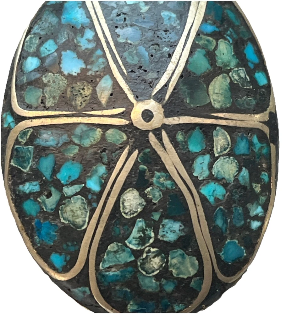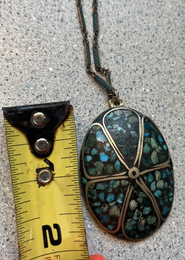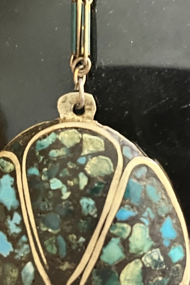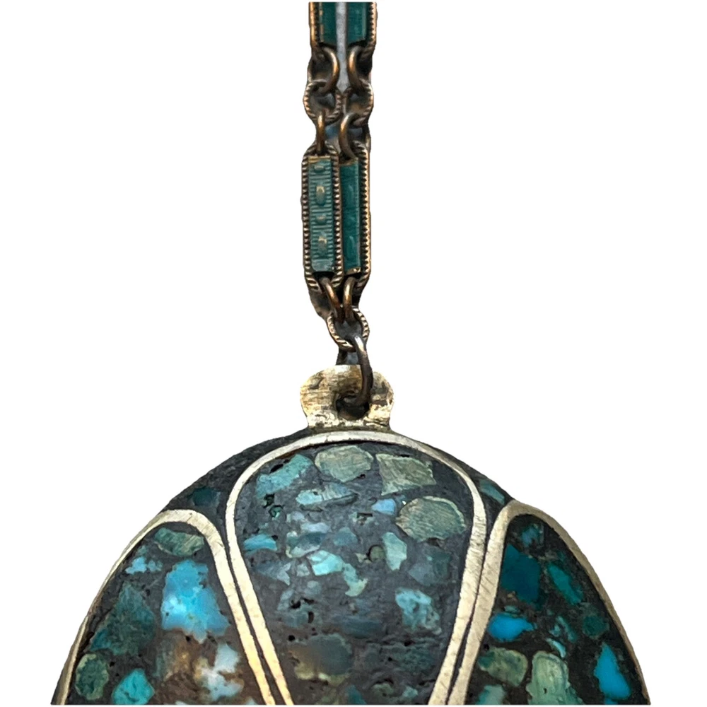 Antique Kashmir Green Blue Chip Turquoise Inlaid Necklace