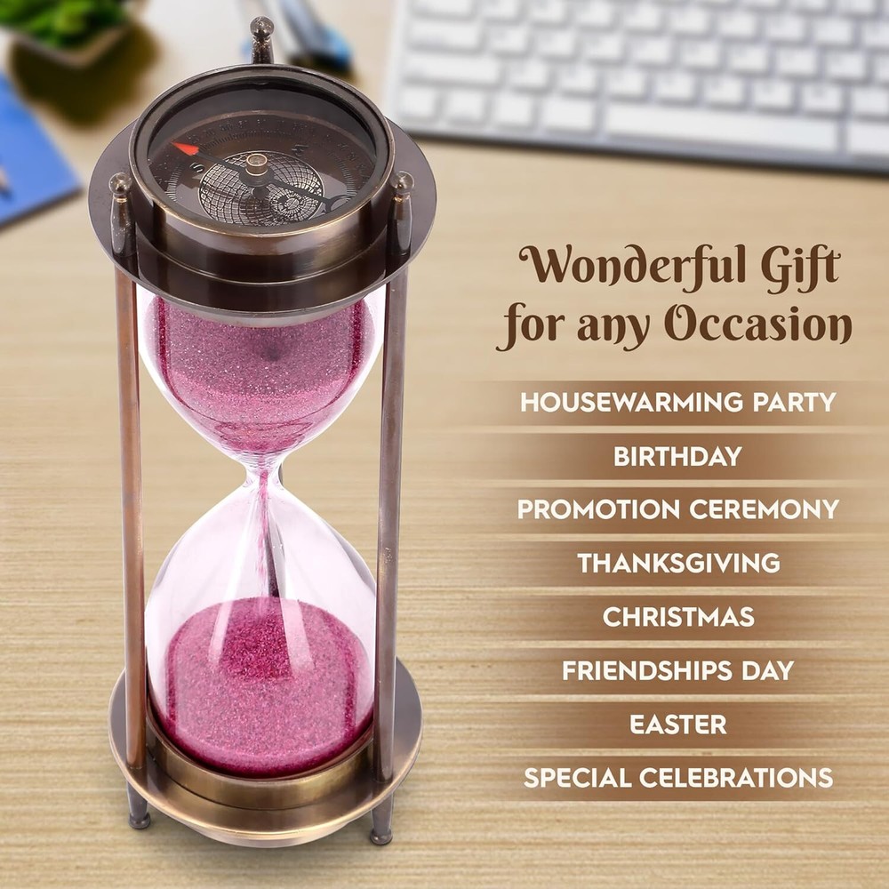 β ππππππππ ππ ππππππππ: These sturdy glass sand timers are simply gorgeous. The minimalist design and contrasting antique-looking sand will stand out in any space. A wonderful memento and keepsake for your loved one. β π πππππππππ πππππππ πππππ: It gives a classy and elegant touch to your office, home desk, or add-on to vintage collections. This is a unique educational and motivational tool for kids and adults of any age group, doubling as a decorative boost to your productivity. An antique-looking compass is on both the up and down sides of this sand timer so that you can see the directions easily. β ππππ πππ πππ π π ππ πππ πππππππππ: CALIFORNIA ANTIQUES STORE Sand Timer makes an excellent gift for all occasions. Can be gifted on occasions like a wedding anniversary, housewarming party, birthday, promotion ceremony, Thanksgiving, Christmas, Friendships Day, Easter, etc. This gift will continue to shine and gleam for years. β πππππππππ ππππ πππππππππ: An unbeatable quality product from CALIFORNIA ANTIQUES STORE . A fully handmade sand timer is beautifully crafted from high-quality brass material. Glass tubes are made of imported solid and thick glass, so they last for years. Measuring 2.5 x 2.5 x 7.0 inches approx. Duration: 5 minutes approx. +/- 10% error as it is a handmade product β ππππππ ππππππ ππππππππππ: We take pride in our products and offer a satisfaction guarantee. Although we are confident that you and the receiver will like it, By any chance if you have any concerns related to product, our dedicated customer care team is here to help. Now click 'add to cart' to complete your risk-free purchase!