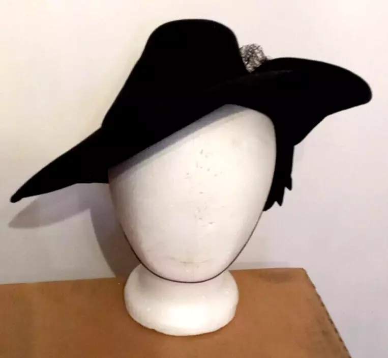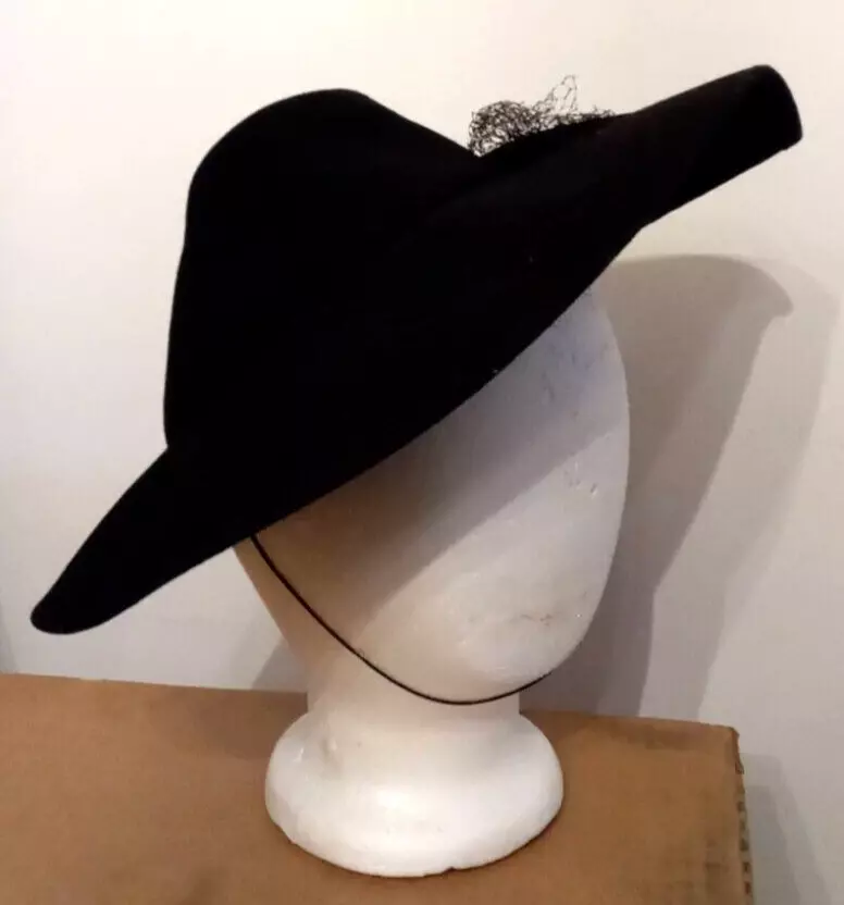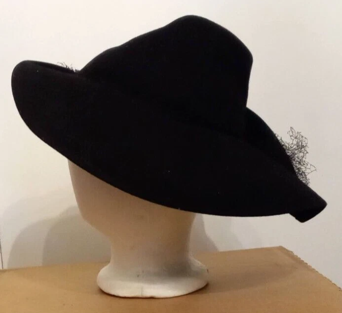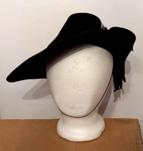 Antique Merrimac Hat Corp Unicorne Hat Victorian Era Black Wool USA Made Womens