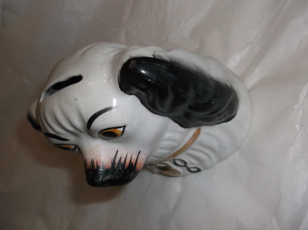 Antique Staffordshire black and white dog ceramic bank figurine 5"x5"x3" excellent condition no damage hand painted face gold gild collar