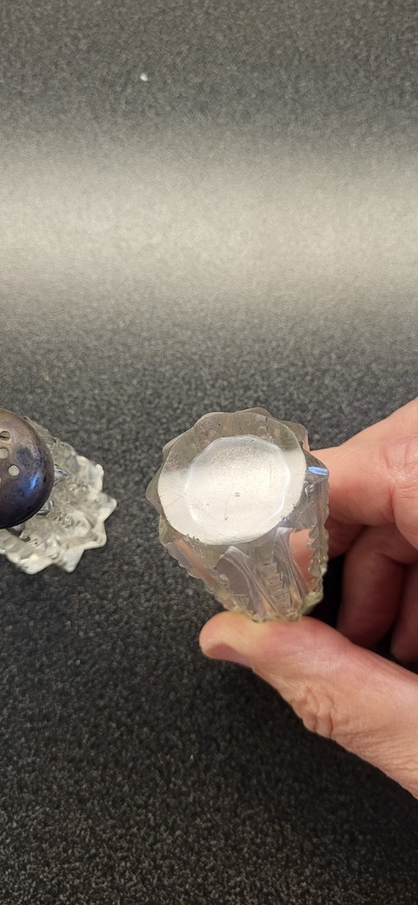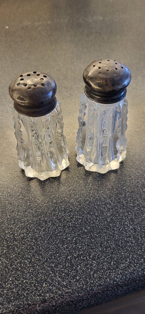 Featured is a pair of Antique, Sterling Silver, Cut Crystal, Salt & Pepper Shakers, measuring 3" high. They are in good condition. There are some minor dings in the Sterling tops but can be easily fixed. Please review the attached pictures before bidding as they are an important part of the description. Thank you.