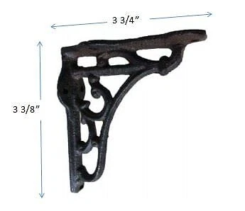 MOUNTING SCREWS NOT INCLUDED! SMALL CAST IRON BRACKETS EACH BRACKET MEASURES 3 3/8" FROM TOP TO BOTTOM AND EXTENDS 3 3/4" FROM THE WALL! NEW MADE TO LOOK OLD!