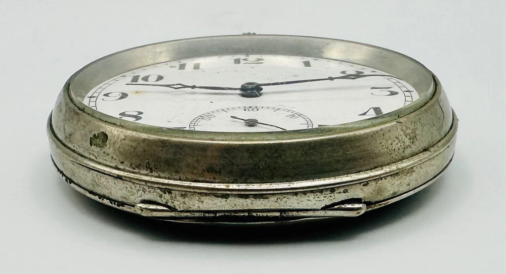 Antique Swiss Made 15 Jewel Pocket Watch - Working Discover a charming antique Swiss-made pocket watch, perfect for collectors of vintage timepieces. This watch features a reliable 15-jewel Swiss mechanical movement , which is stem wound and is currently in working condition , winding and ticking along nicely. The watch presents a classic white dial with clear Arabic numerals and a functional sub-seconds dial at the 6 o'clock position. The case is made of a durable white metal , offering a timeless antique aesthetic. This is a wonderful opportunity to own a piece of horological history, ideal for display or daily use for those who appreciate antique craftsmanship. Key Features: Swiss Made Movement: Features a 15-jewel Swiss mechanical movement. Working Condition: The watch is fully functional, winding and ticking nicely. Stem Wound: A traditional and desirable winding mechanism. Classic Design: White dial with Arabic numerals and a sub-seconds hand. White Metal Case: Robust and durable, with a classic antique appearance. Generous Size: Measures 49.7mm in case diameter. Condition: This antique pocket watch is in good working condition for its age. The white metal case exhibits some tarnishing and general surface wear, consistent with an item of this vintage. Please note that the rear case lid has been initialled , adding a unique touch of personal history to the piece. The dial appears clean and legible. Please examine the detailed photographs carefully, as they form an integral part of the description and best illustrate the item's exact condition. Markings: Movement: "15 JEWELS SWISS MADE" Dial: "SWISS MADE" Inner Case: "38575" Rear Case: Has been initialled Dimensions: Case Diameter: 49.7mm (approximately 1.96 inches). Add this charming antique Swiss pocket watch to your collection today! As usual, this item will be packaged carefully and dispatched with tracking. International shipping is available upon request.