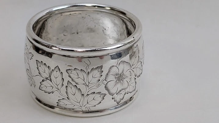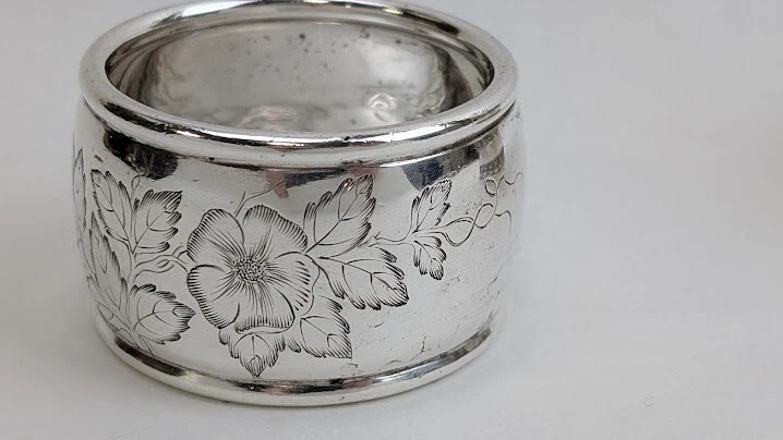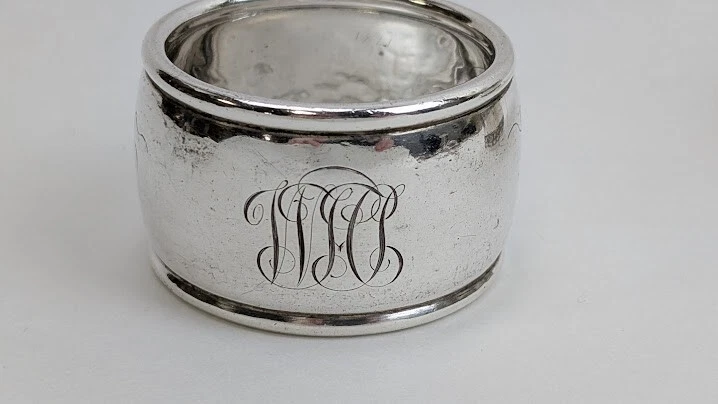 Antique Tiffany & Co. Napkin Ring. Solid Sterling Silver 47.8 grams Monogrammed as shown. Good condition with some small dings, dents, and scratches. Dimensions of this item are: 2" Diameter x 1-1/4" thick.