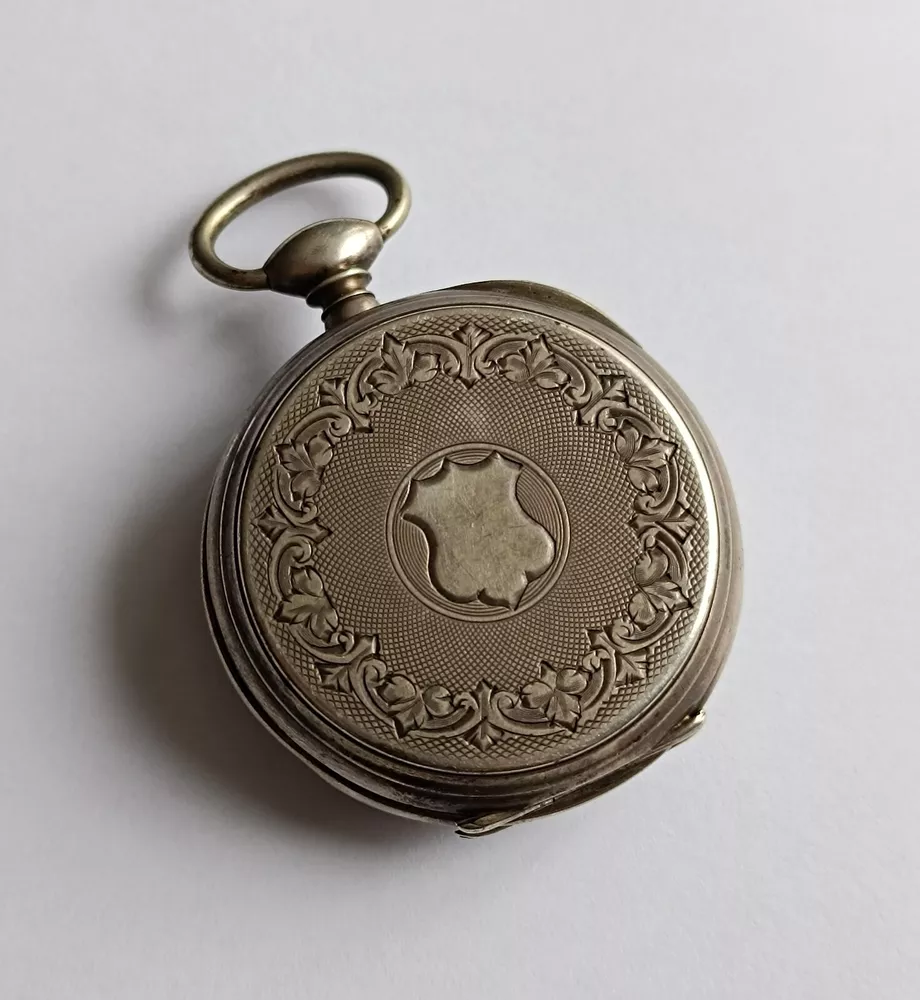 Antique French silver pocket watch, 45mm, hallmarked with the French Crab mark. Features a Cylindre movement with 10 rubis, finely engraved case, and a Roman numeral dial with original hands. The mechanism needs servicing. Doesn't work. A rare and collectible piece. antique pocket watch, silver pocket watch, vintage pocket watch, French watch, Cylindre movement, 10 rubis watch, hallmarked silver, collectible pocket watch, Roman numeral dial, Art Nouveau watch, Victorian watch, French antique, rare pocket watch, silver timepiece, manual wind watch, hand-engraved watch, pocket chronometer, 19th century watch, steampunk watch, silver fob watch…