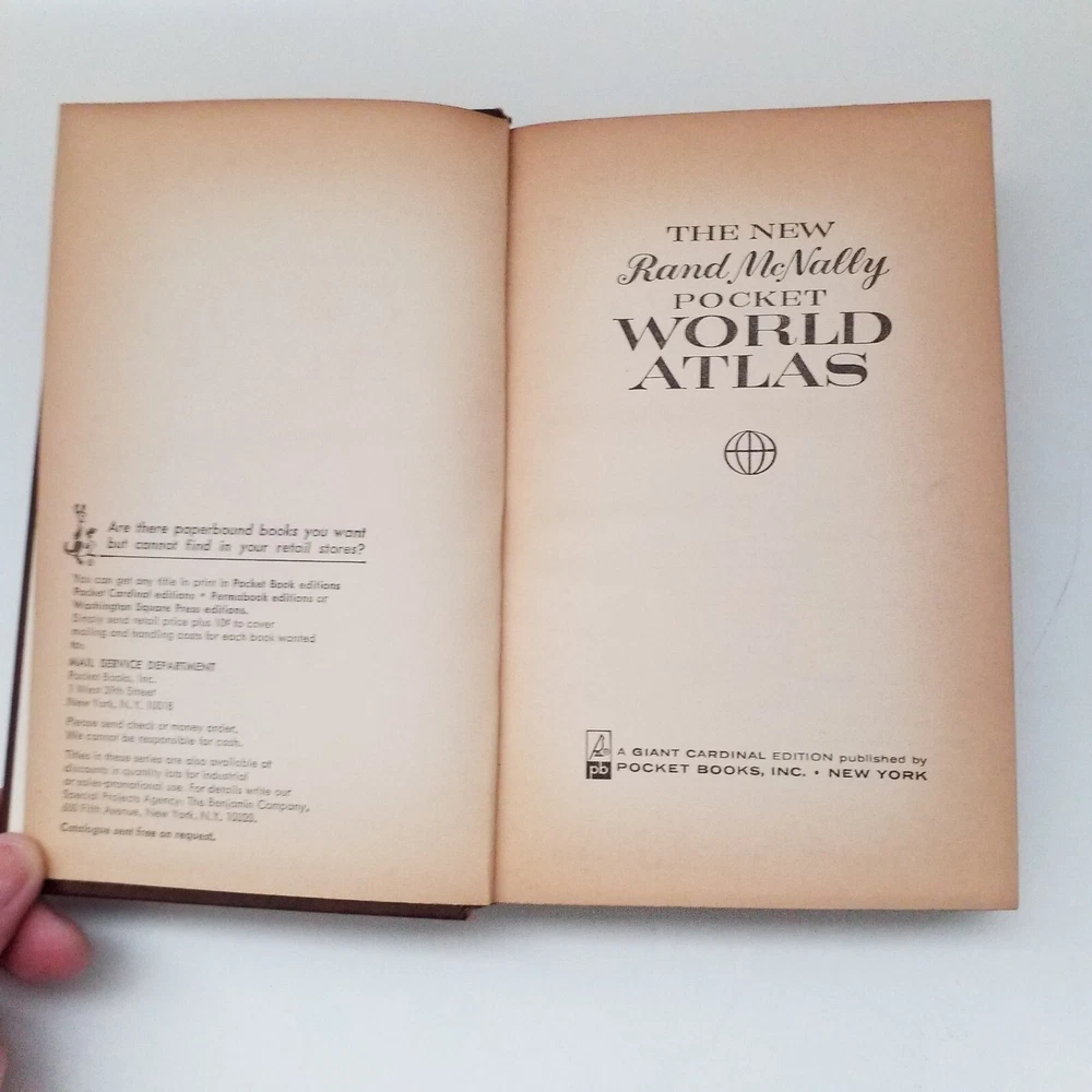 This antique vintage Rand McNally Pocket World Atlas Book, published in 1961, is a must-have for collectors and enthusiasts of antique maps and atlases. This book is a great reference piece for anyone interested in the world's geography, with detailed maps of various countries accompanied with informative text. Color world maps. The book's publisher, Rand McNally, is well-known for producing high-quality maps and atlases, and this pocket world atlas is no exception. It is perfect for those interested in collecting antique maps and atlases or for anyone who wants to add a unique piece to their collection. Shipped via USPS media mail Tags: collection collector book library travelers student scholastic