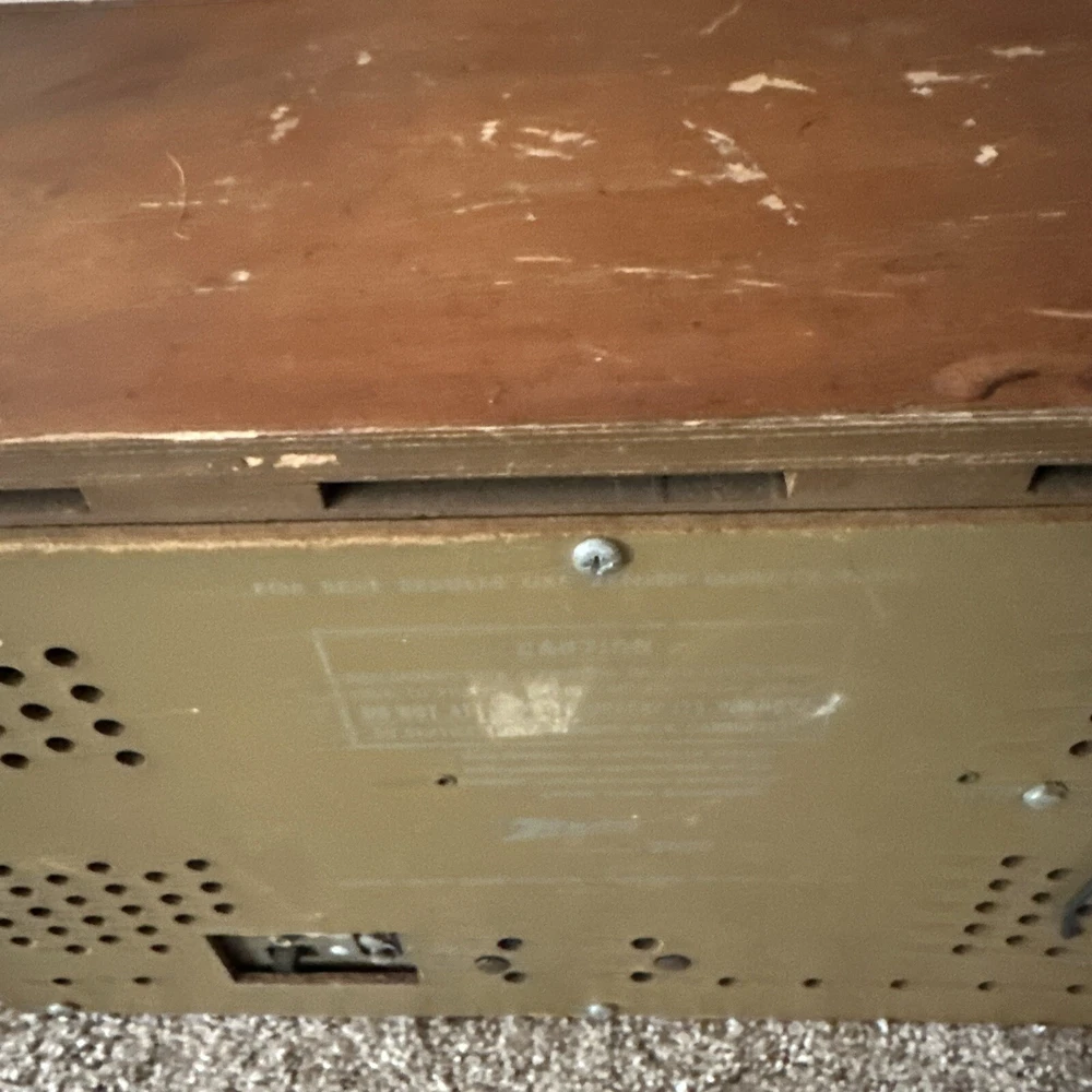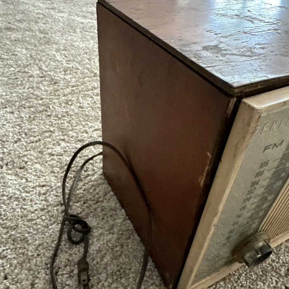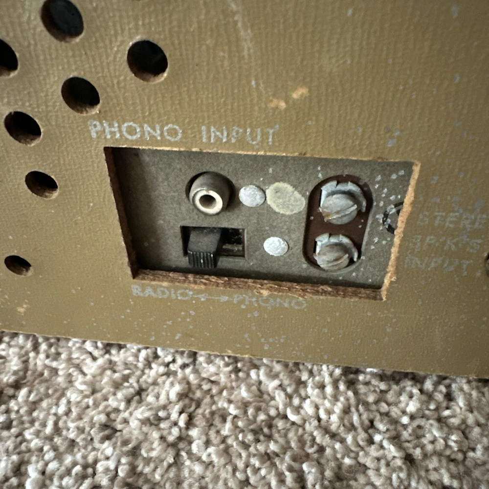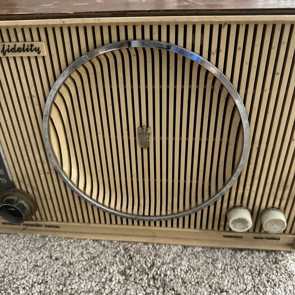 Antique radio in working condition. Has its share of scrapes, chips, and nicks but it is in good restorable condition. All functions seem to work, the volume goes up and down and the tuner works too. I am not able to test the phone jack on the back so not sure about it. Please see pics. No returns as radio is very heavy and shipping is pricey.