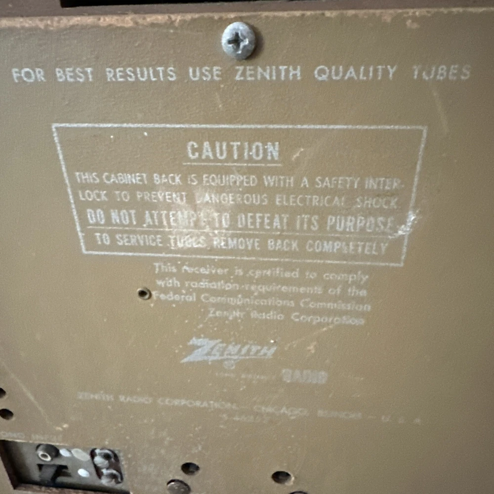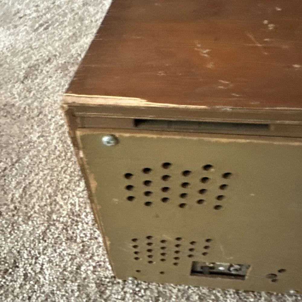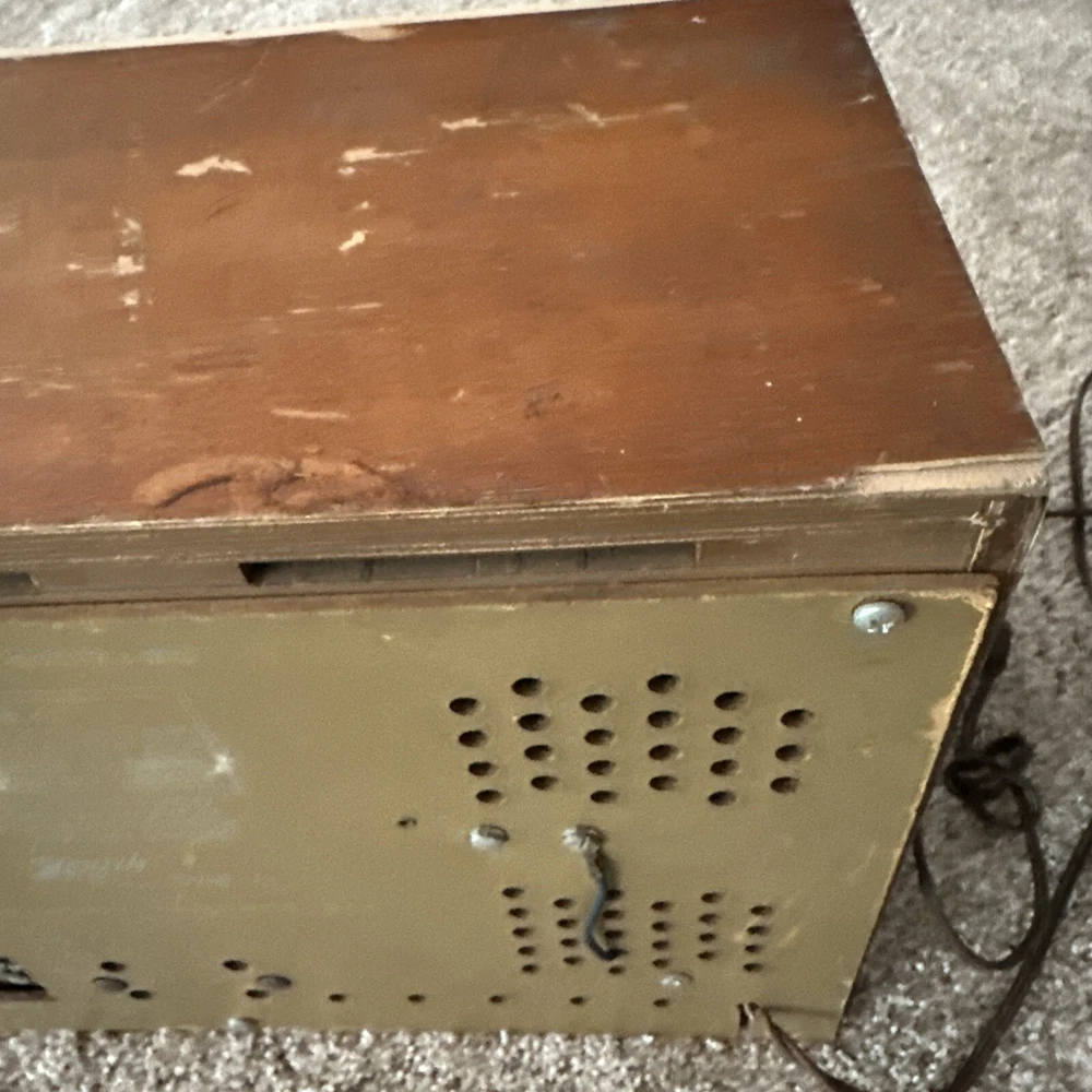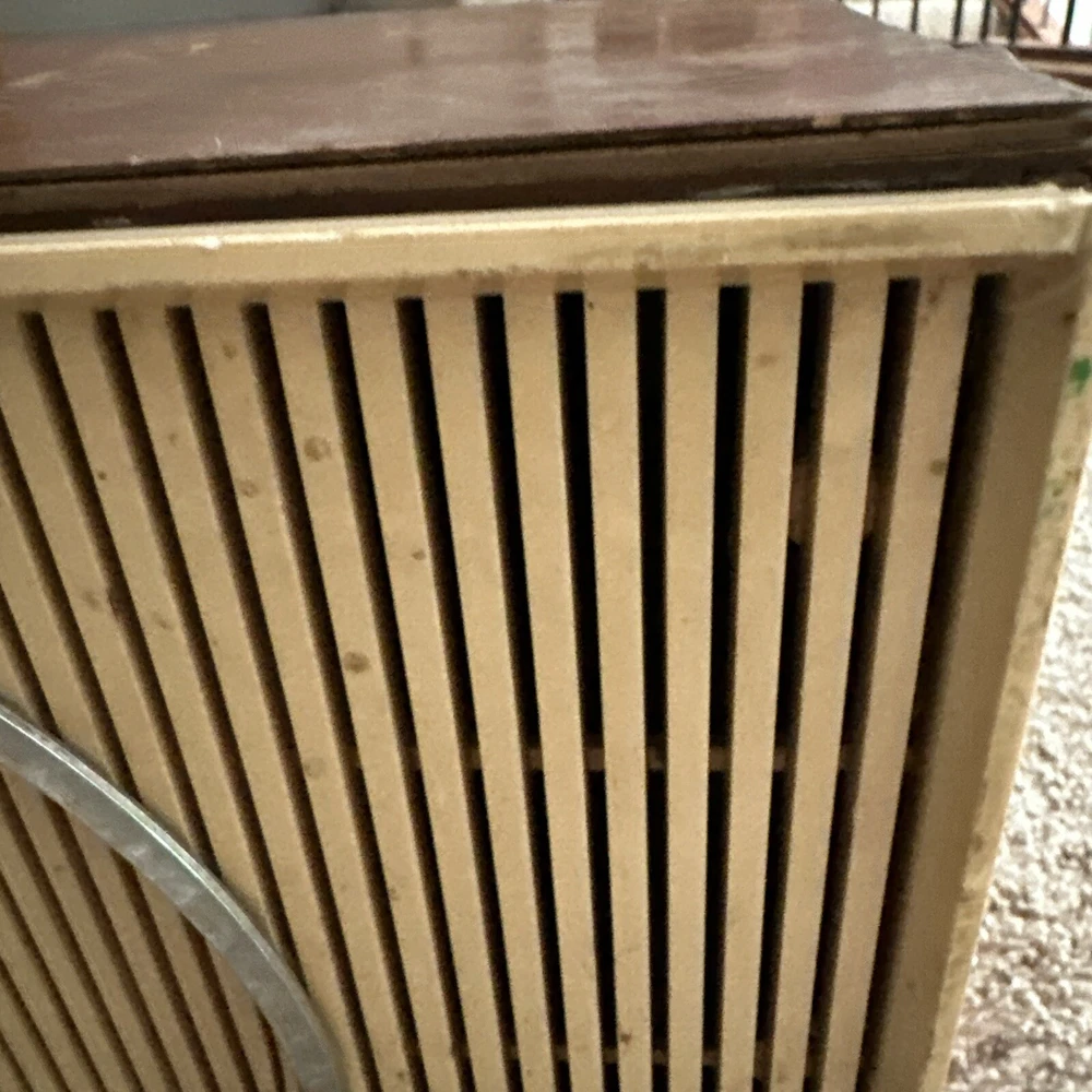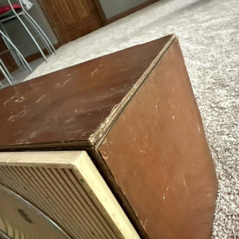 Antique radio in working condition. Has its share of scrapes, chips, and nicks but it is in good restorable condition. All functions seem to work, the volume goes up and down and the tuner works too. I am not able to test the phone jack on the back so not sure about it. Please see pics. No returns as radio is very heavy and shipping is pricey.