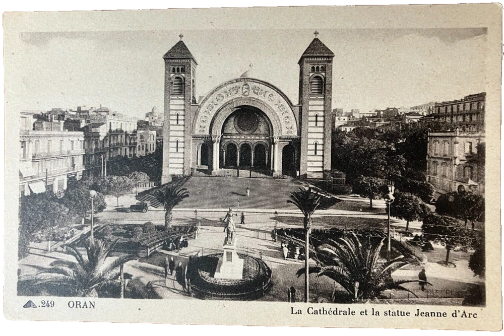 Antique postcard: The Cathedral & statue of Jean d'Arc, Oran, Algeria, unposted, excellent condition. My grandfather bought this in 1906. He was in the US Navy from 1904 to 1907.