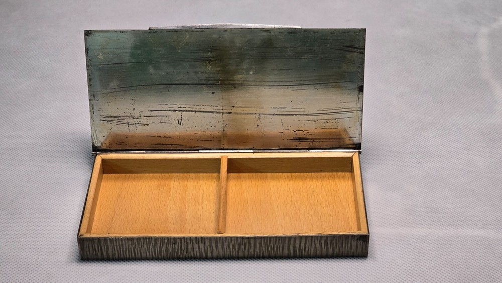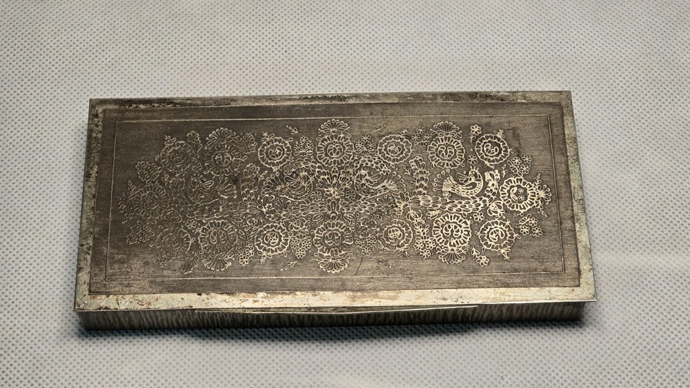 Peacock Bird pattern ornament decorated Antique silver colored box Size: 17 cm x 8 cm Inner parts made from wood. It has two separated tray. Not silver, only silver colored! (The buyer is responsible for any customs duties, taxes, fees, etc. that aren't assessed at checkout. In order to be sure please contact your customs bureau for information on custom duties and/or limitations before buy an item.)