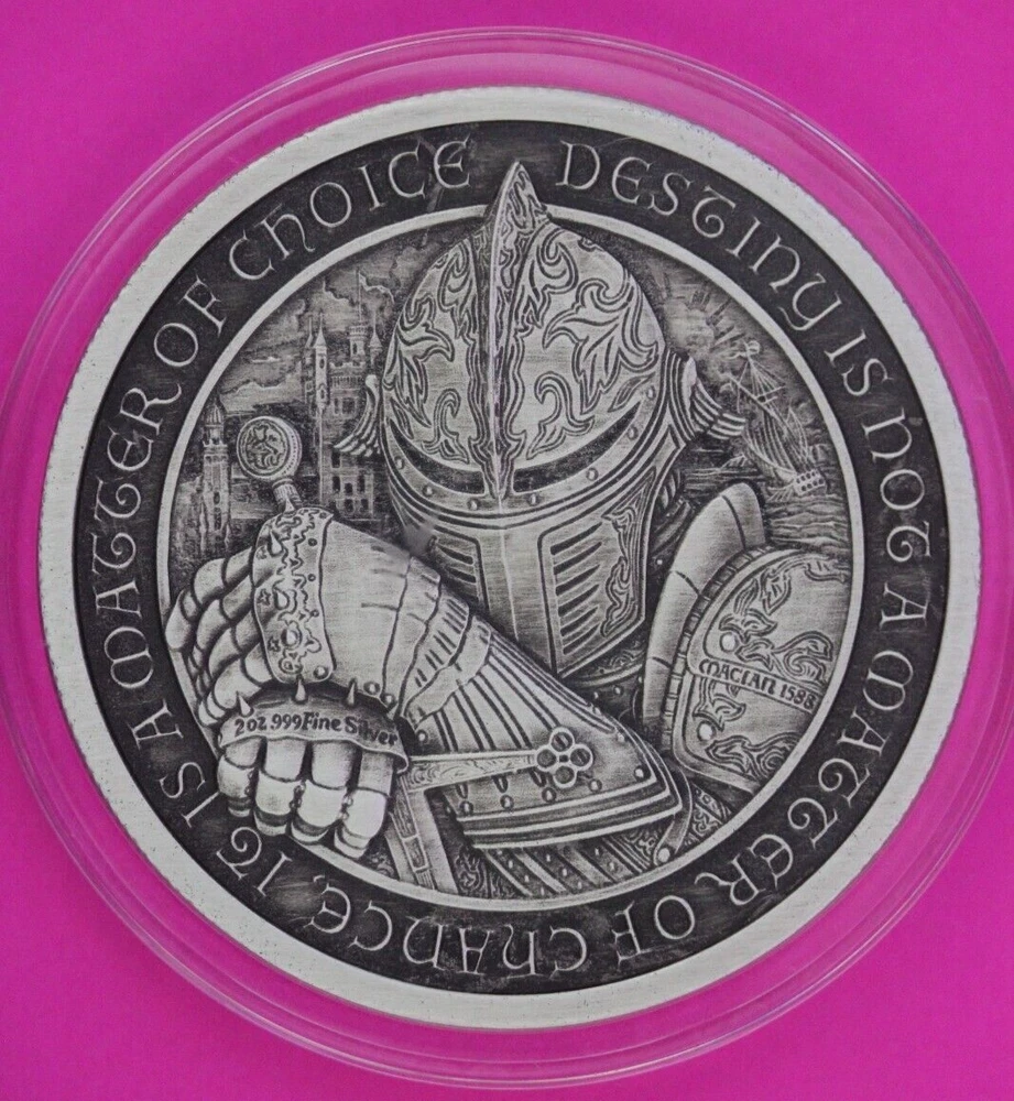 Antiqued Chance Is A Dagger Of Choice 2 Ounce .999 Fine Silver Medal 6039